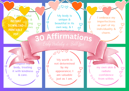Printable Affirmation Card Set - Digital Download PDF - Self Love & Body Positivity