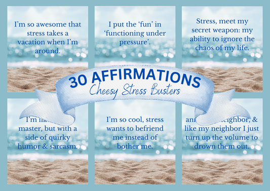 Printable Affirmation Card Set - Digital Download PDF - Stress Busters, Cheesy