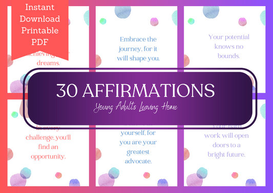 Printable Affirmation Card Set - Digital Download PDF - Young Adults Leaving Home
