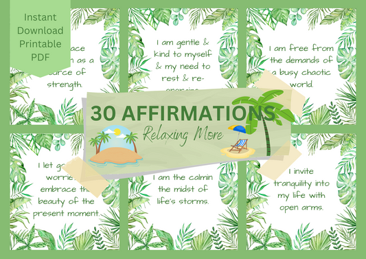 Printable Affirmation Card Set - Digital Download PDF - Relaxing More