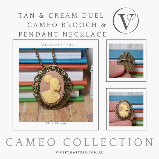 Antique Style Victorian Era Inspired Duel Use Cameo Brooch & Necklace - Portrait of a Lady