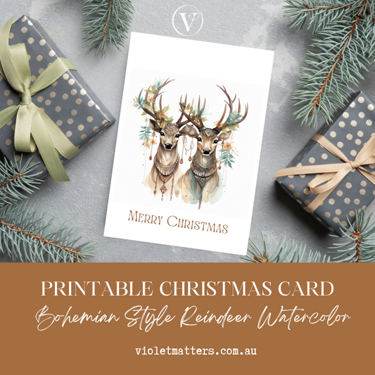 Neutral Watercolor Style Christmas Reindeer Printable Christmas A5 Card