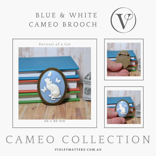 Antique Style Victorian Era Inspired Cameo Brooch - Portrait of a Cat
