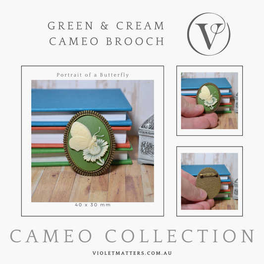 Antique Style Victorian Era Inspired Cameo Brooch - Portrait of a Butterfly