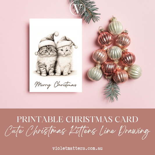 Merry Catmas Printable Digital Christmas A5 Card - Cute Kittens in Hats