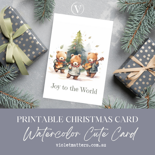 Joy to the World Adorable Bears Printable Christmas A5 Card