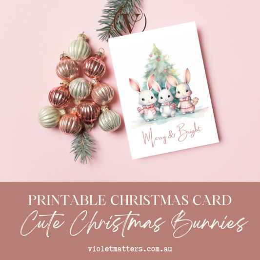 Delightful Pastel Watercolor Bunny Printable Christmas A5 Card