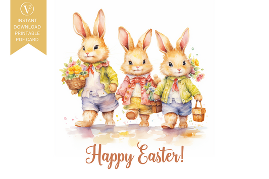 Cute Bunny Happy Easter Card - Watercolor Printable Card