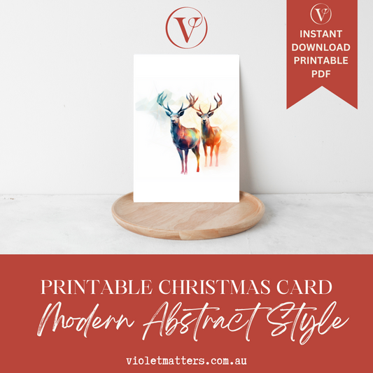 Modern Abstract Syle Christmas Reindeers Printable Christmas A5 Card