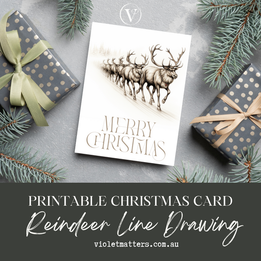 Printable Digital Christmas A5 Card - Beautiful Reindeer's Line Drawing