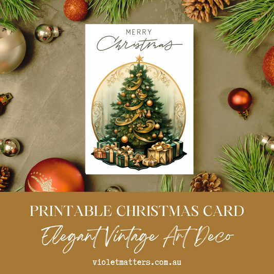 Digital Printable Elegant Art Deco Style Christmas Tree A5 Card