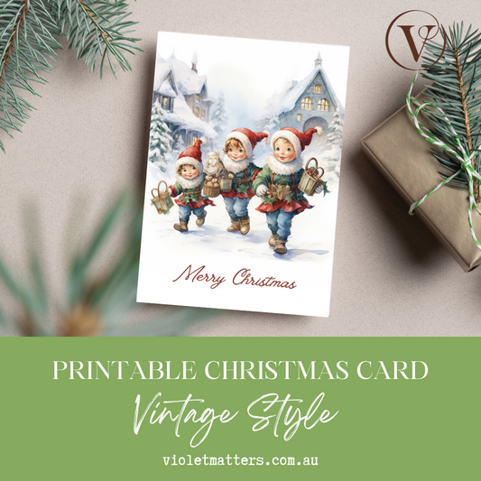Vintage Style Merry Christmas Printable Christmas A5 Card