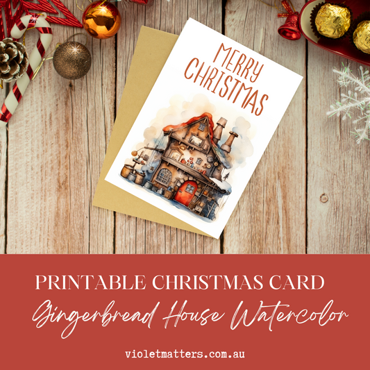 Merry Christmas Gingerbread Watercolor Printable Christmas Card A5 Size