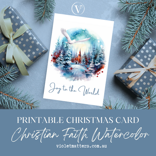 Beautiful Watercolor Printable Christmas Faith A5 Card