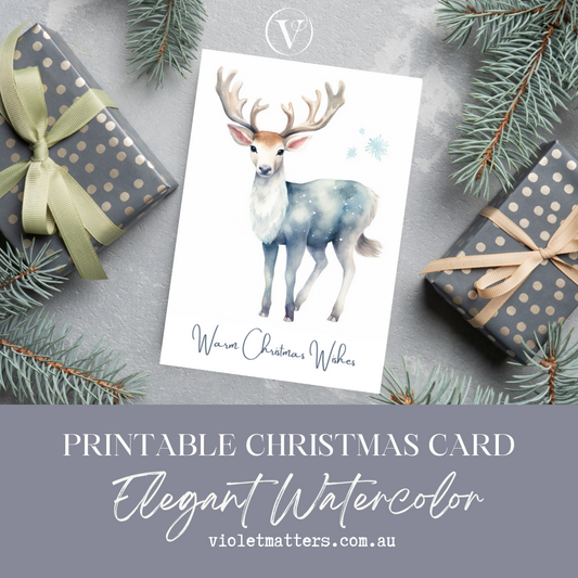 Elegant Pastel Watercolor Deer Printable Christmas A5 Card