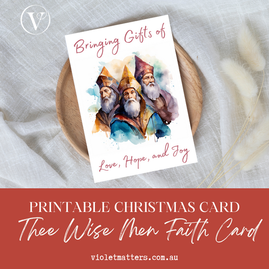Elegant Three Wisemen Watercolor Printable Christmas A5 Card