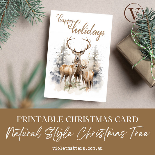 Neutral Watercolor Style Christmas Reindeer Printable Christmas A5 Card