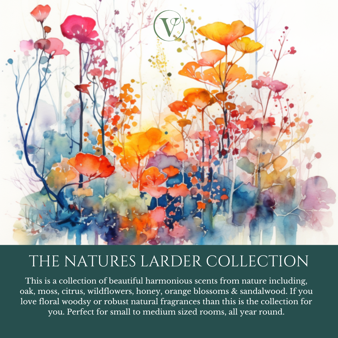 This is a collection of beautiful harmonious scents from nature including, oak, moss, citrus, wildflowers, honey, orange blossoms & sandalwood. If you love floral woodsy or robust natural fragrances than this is the collection for you. Perfect for small to medium sized rooms, all year round.