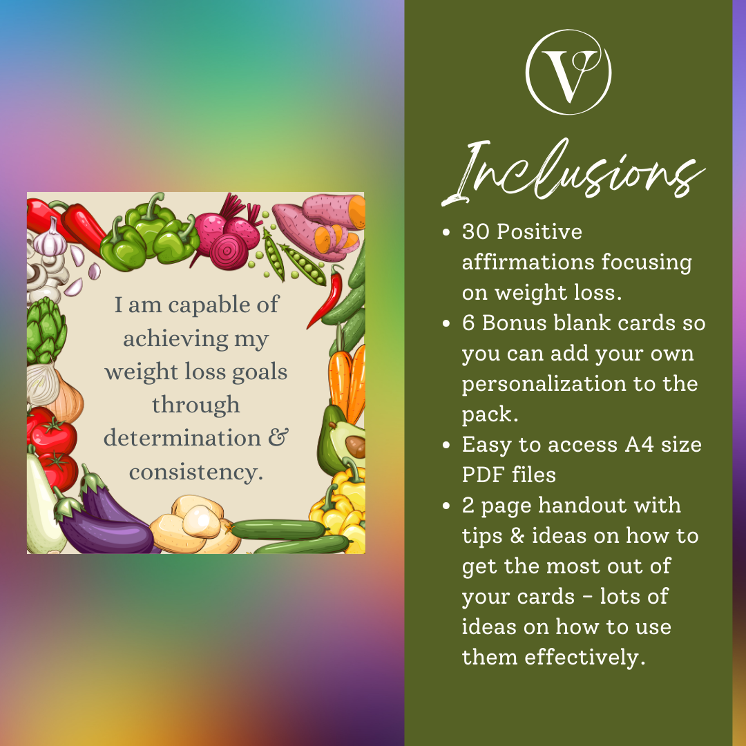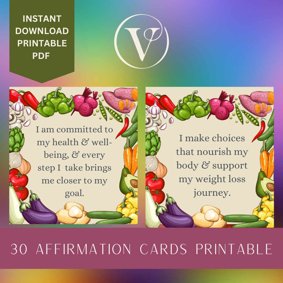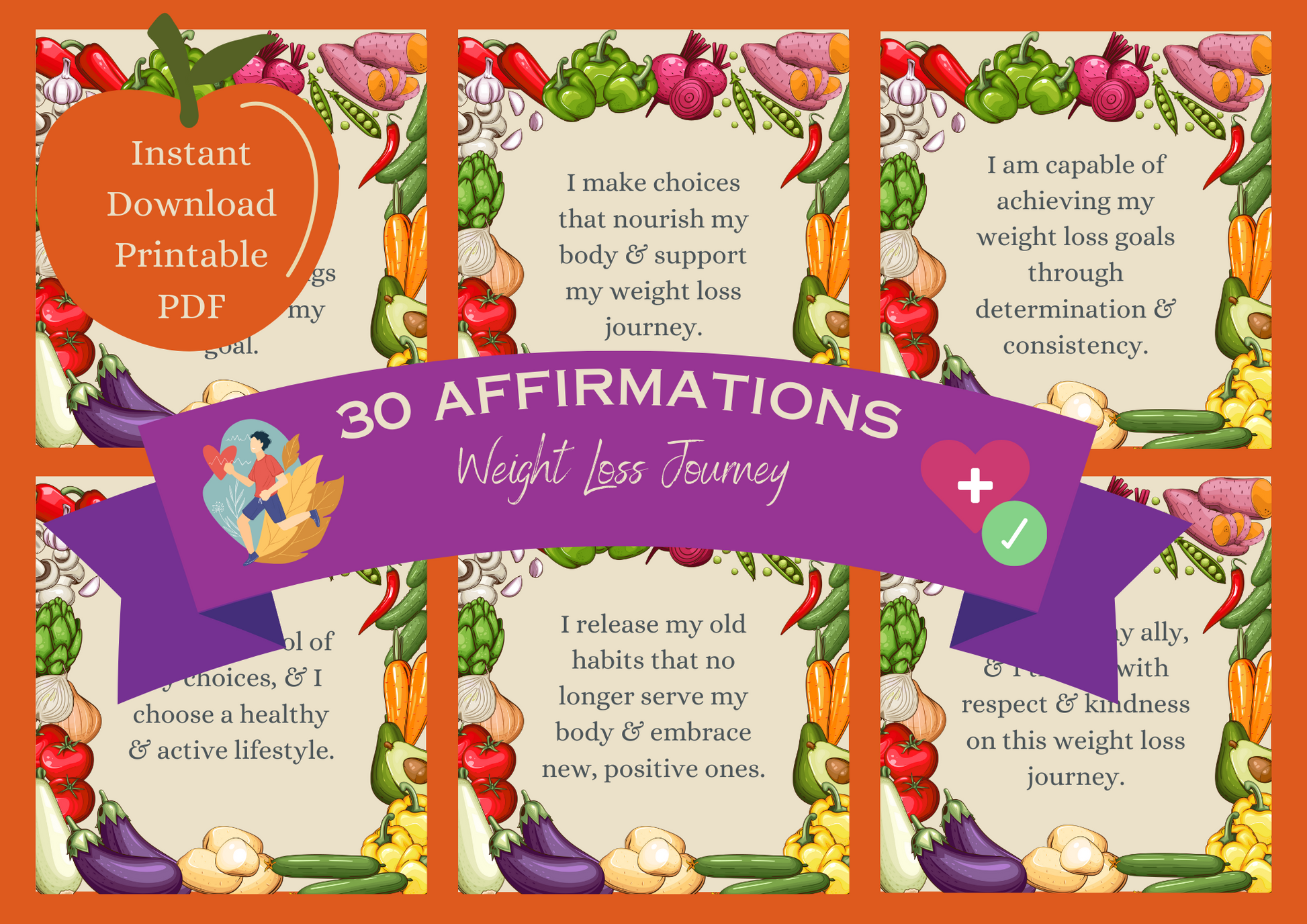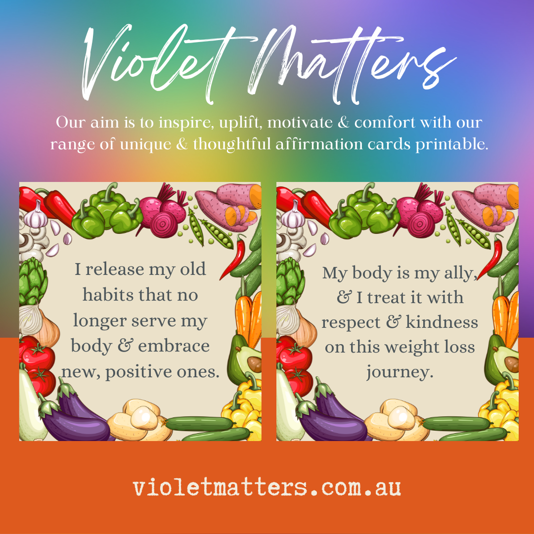 Printable Affirmation Card Set - Digital Download PDF - Weight Loss Journey Inspiration & Motivation