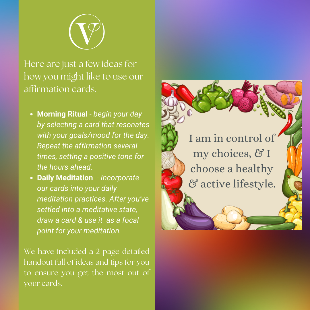 A set of 30 motivating affirmations plus 6 blank cards to support self-love, determination, and progress on your weight loss journey.