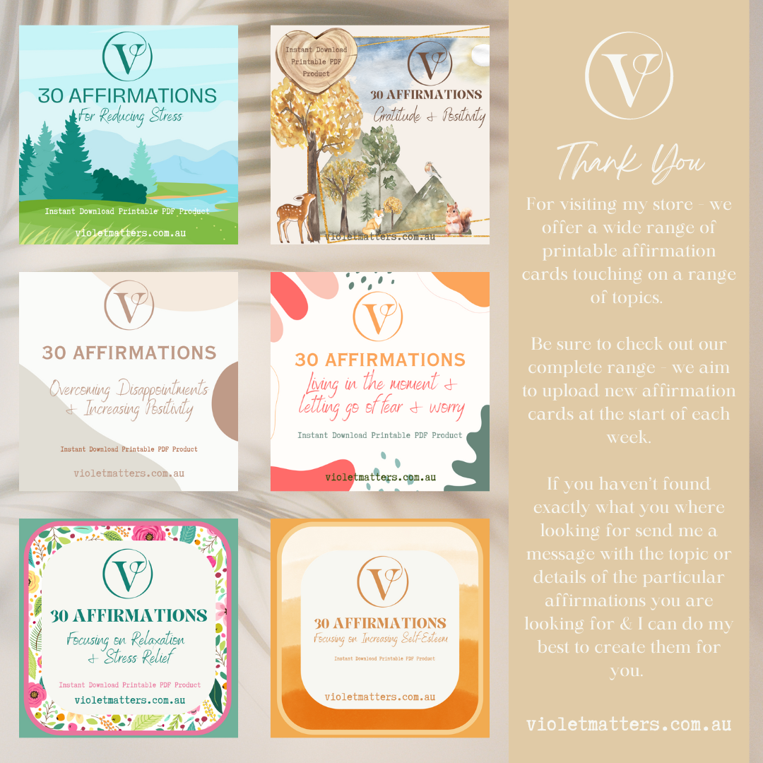 Printable Affirmation Card Set - Digital Download PDF - Empower, Self-Love, Confidence & Positivity