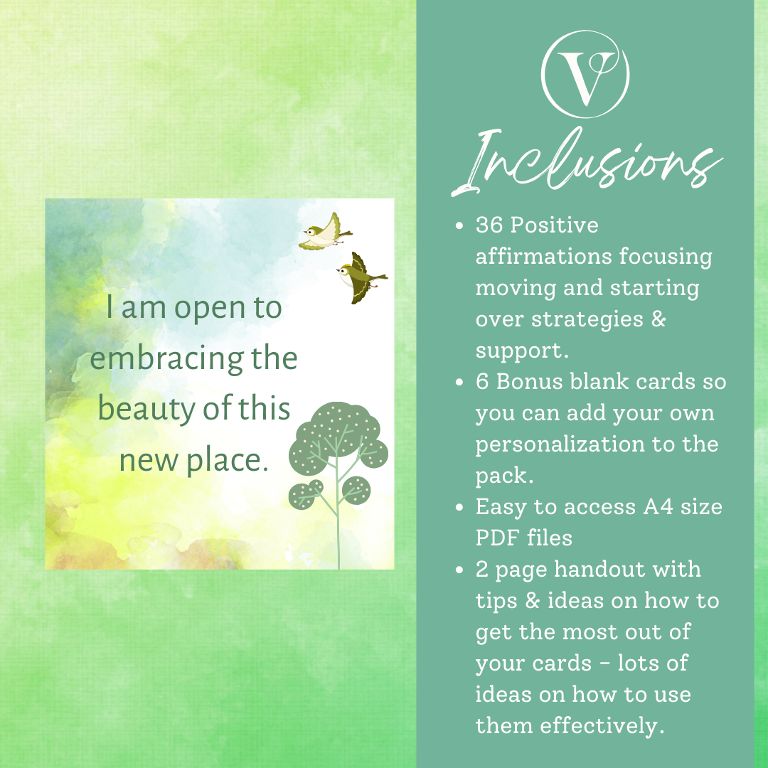 Printable Affirmation Card Set - Digital Download PDF - Moving & Starting Over
