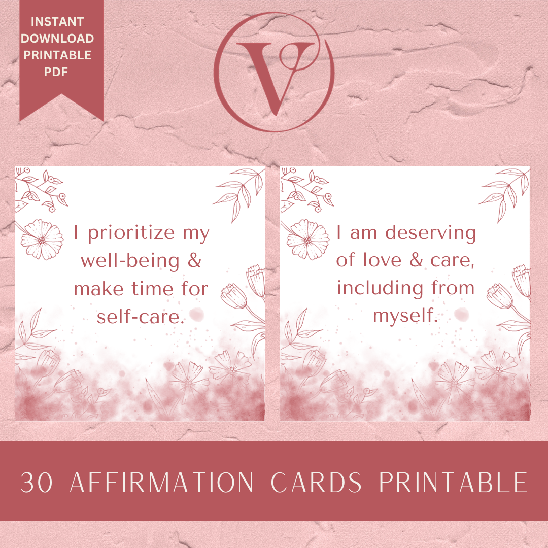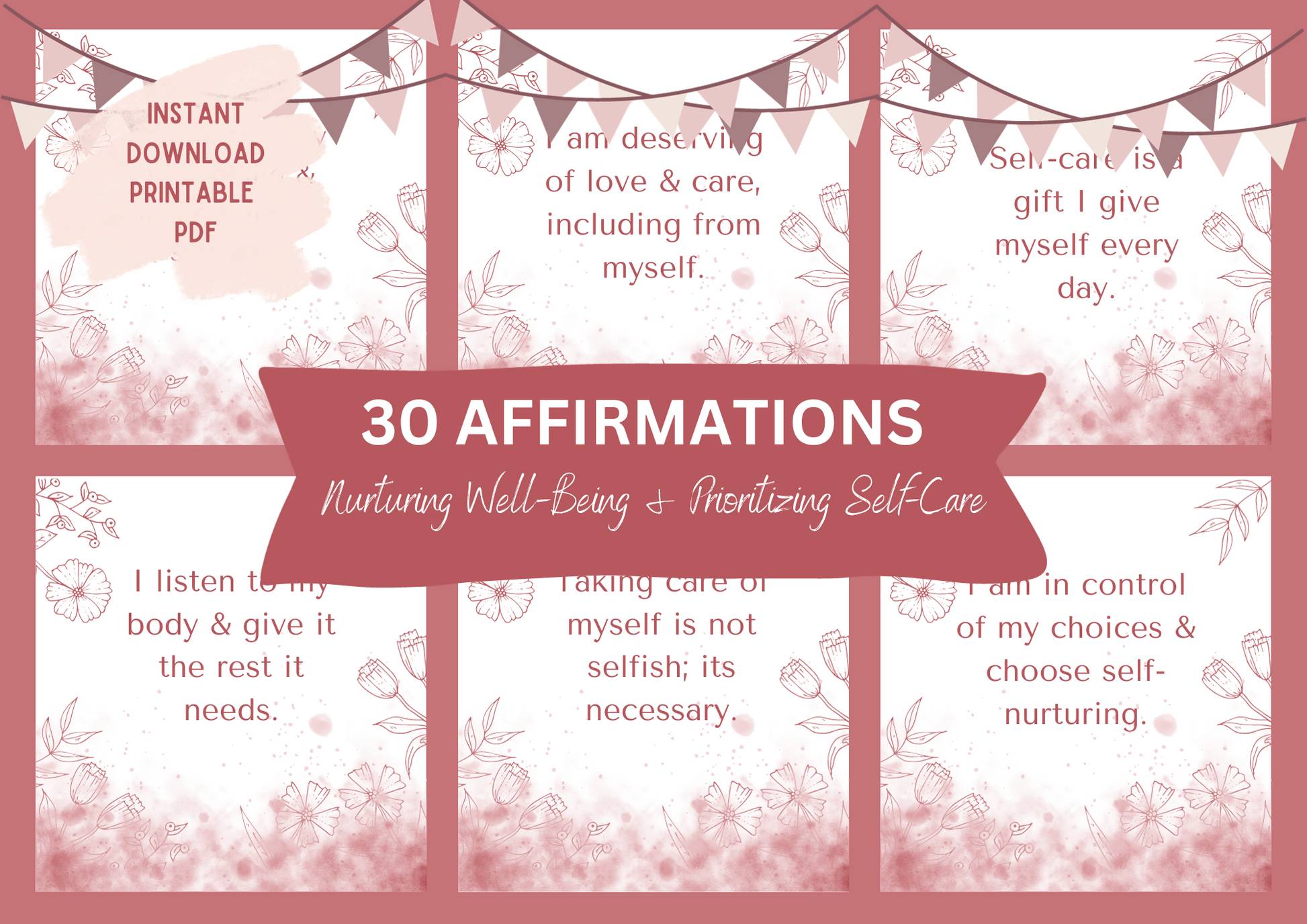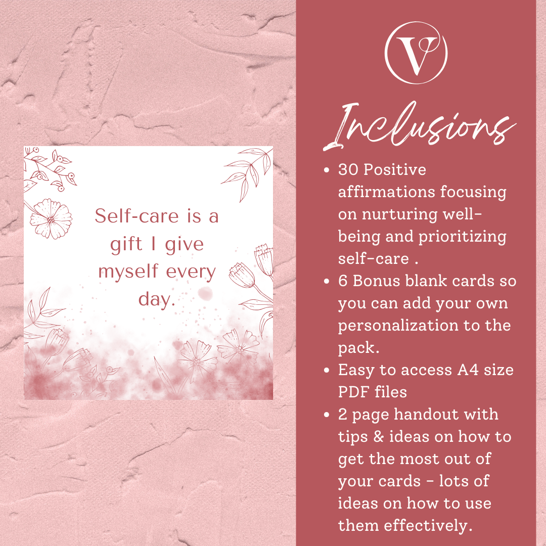 Printable Affirmation Card Set - Digital Download PDF - Nurturing Well-Being & Prioritizing Self Care