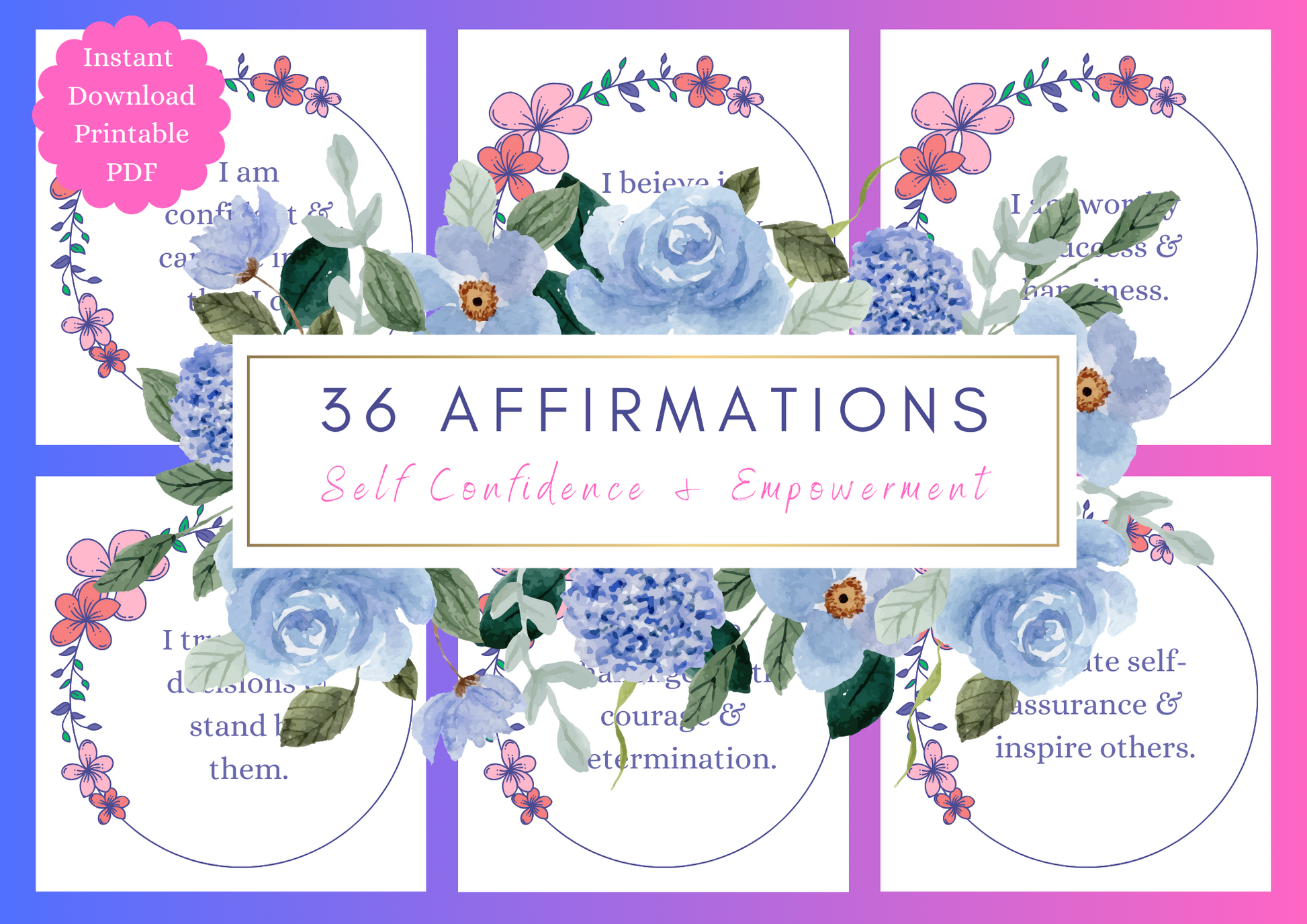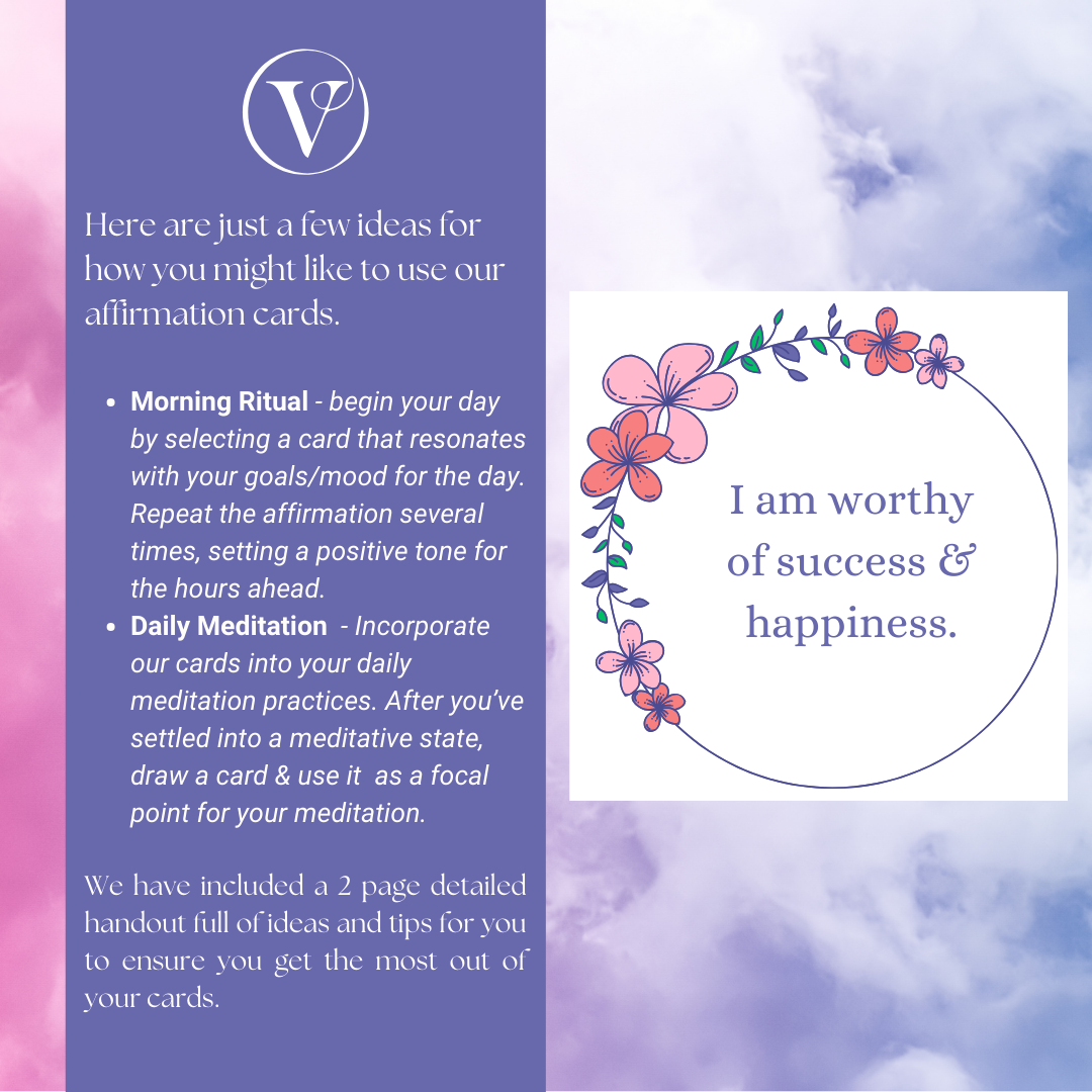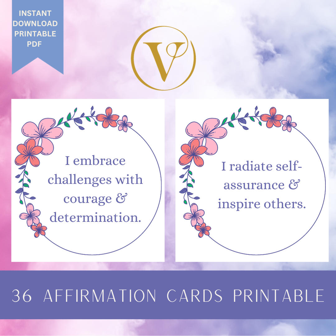 Boost confidence and motivation with this printable set of 36 empowering affirmations, plus 3 blank cards for personalisation.