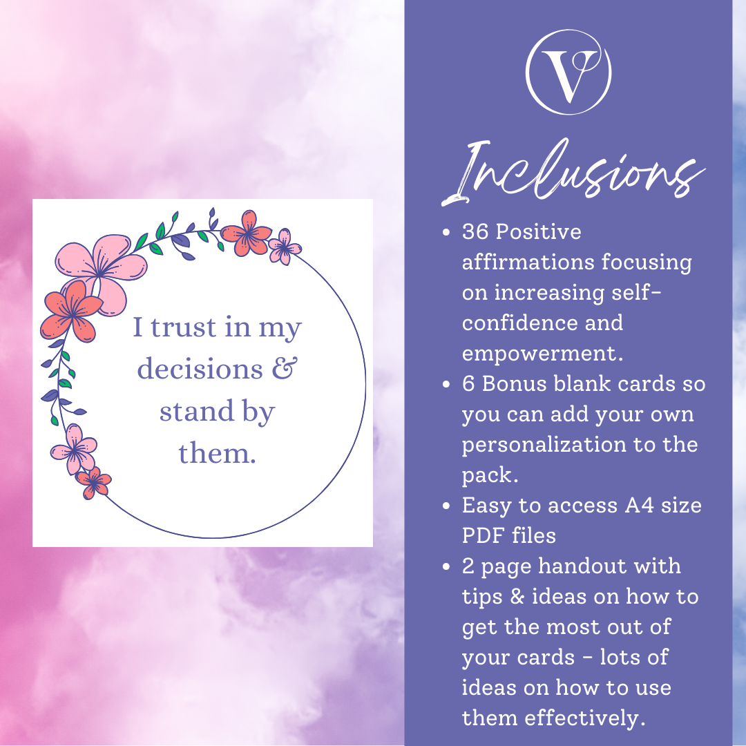 Printable Affirmation Card Set - Digital Download PDF - Self Empowerment & Increasing Self Confidence Cards