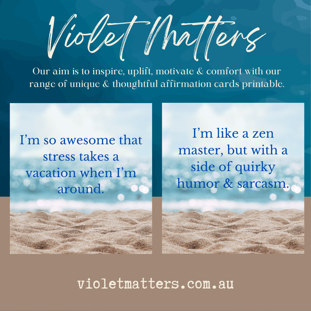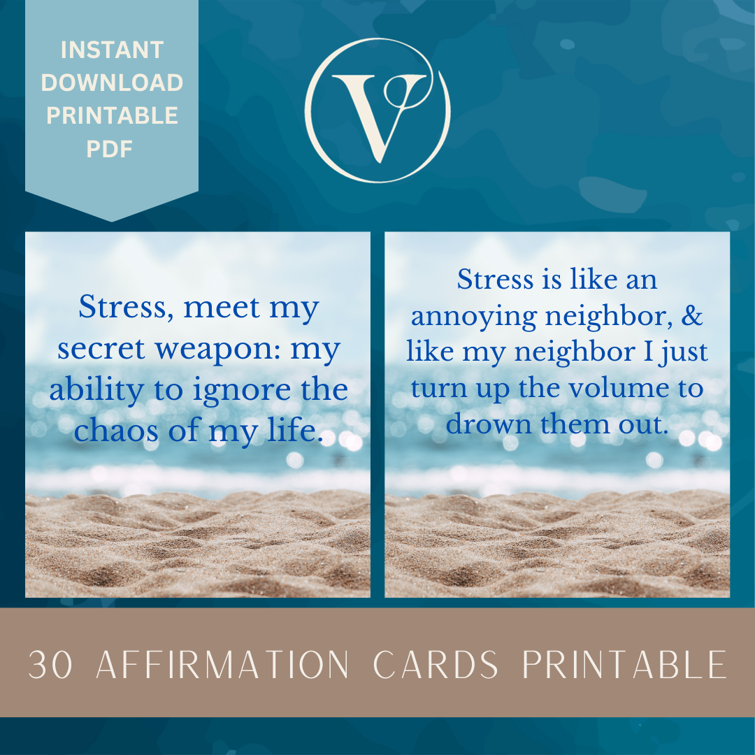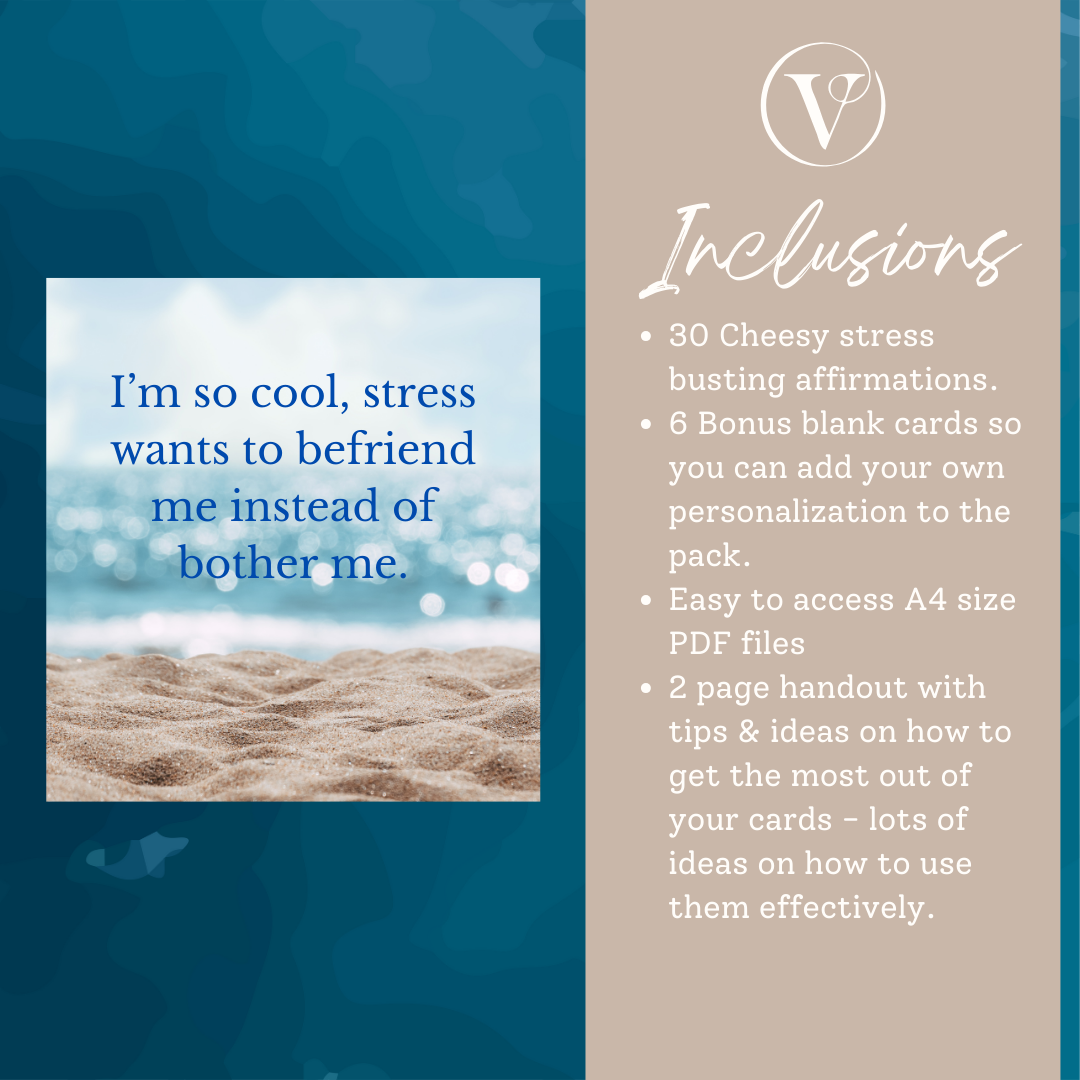 Printable Affirmation Card Set - Digital Download PDF - Stress Busters, Cheesy
