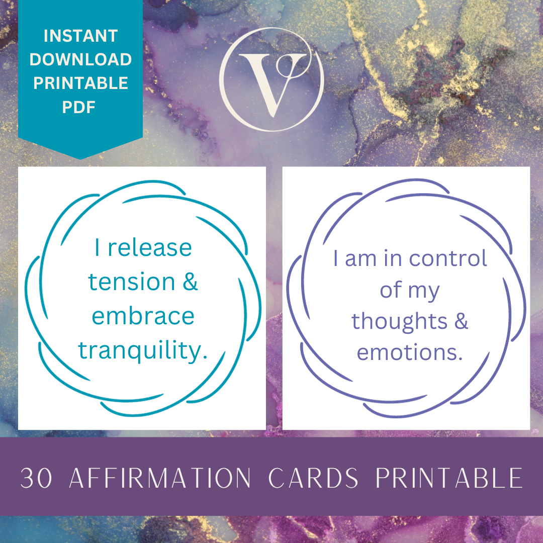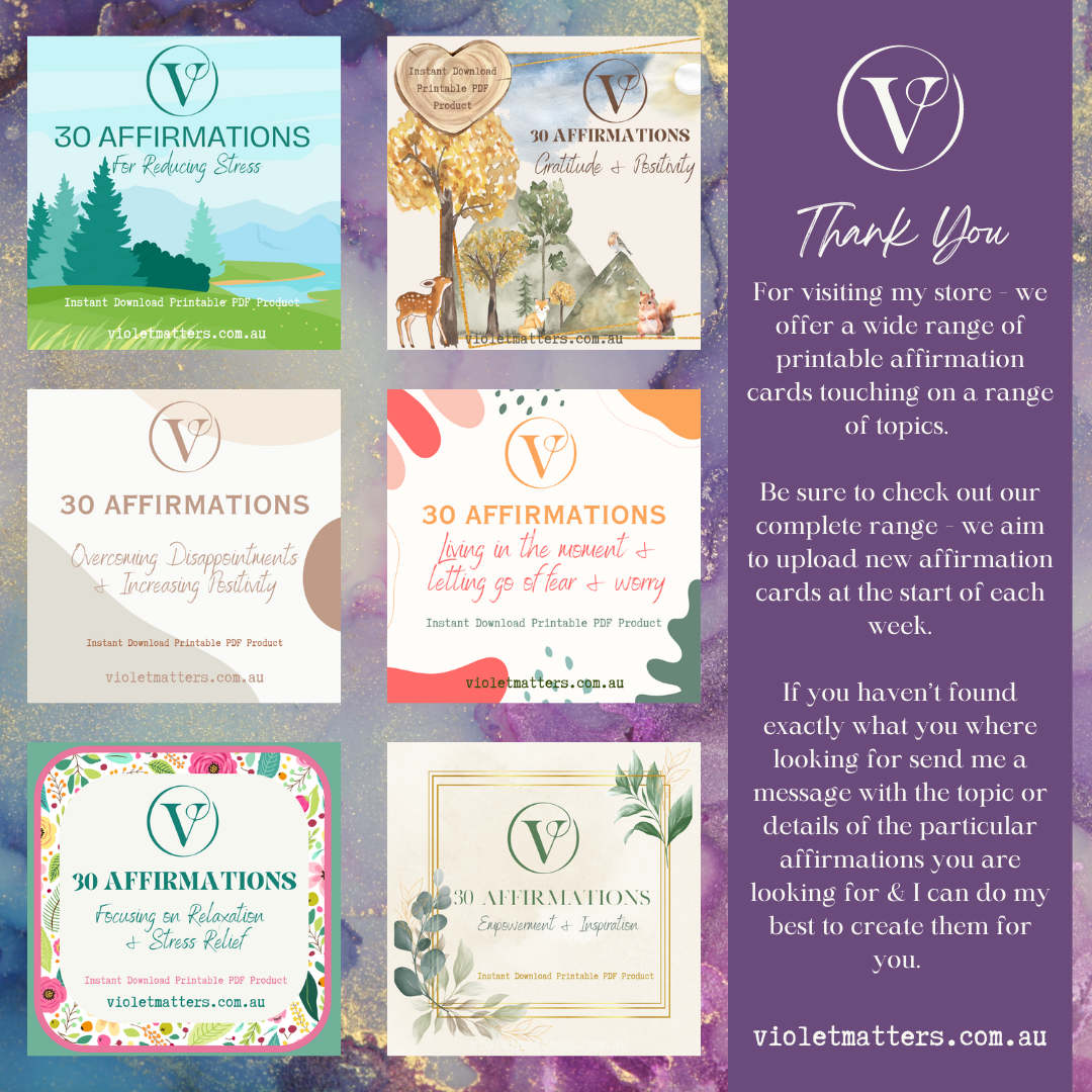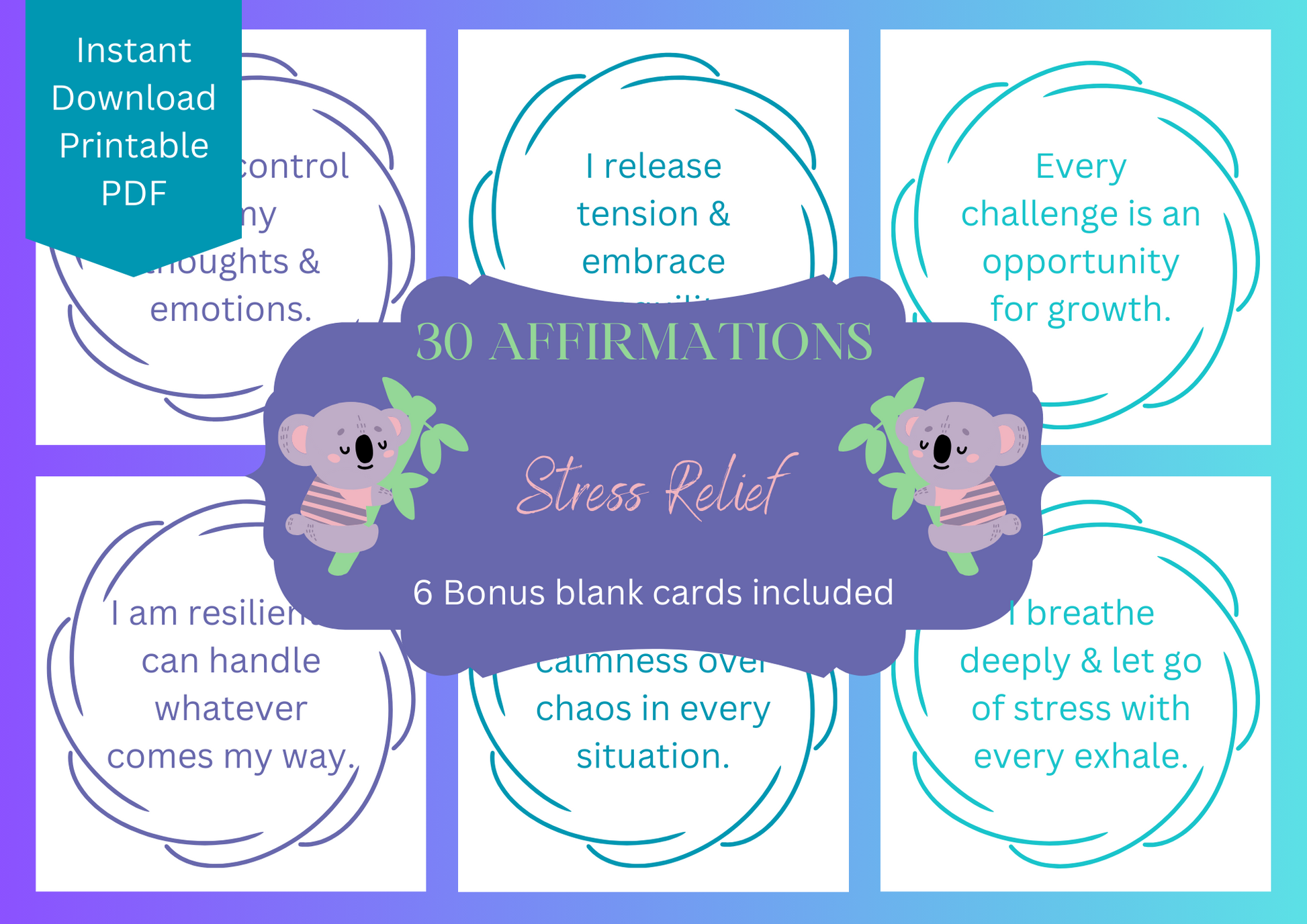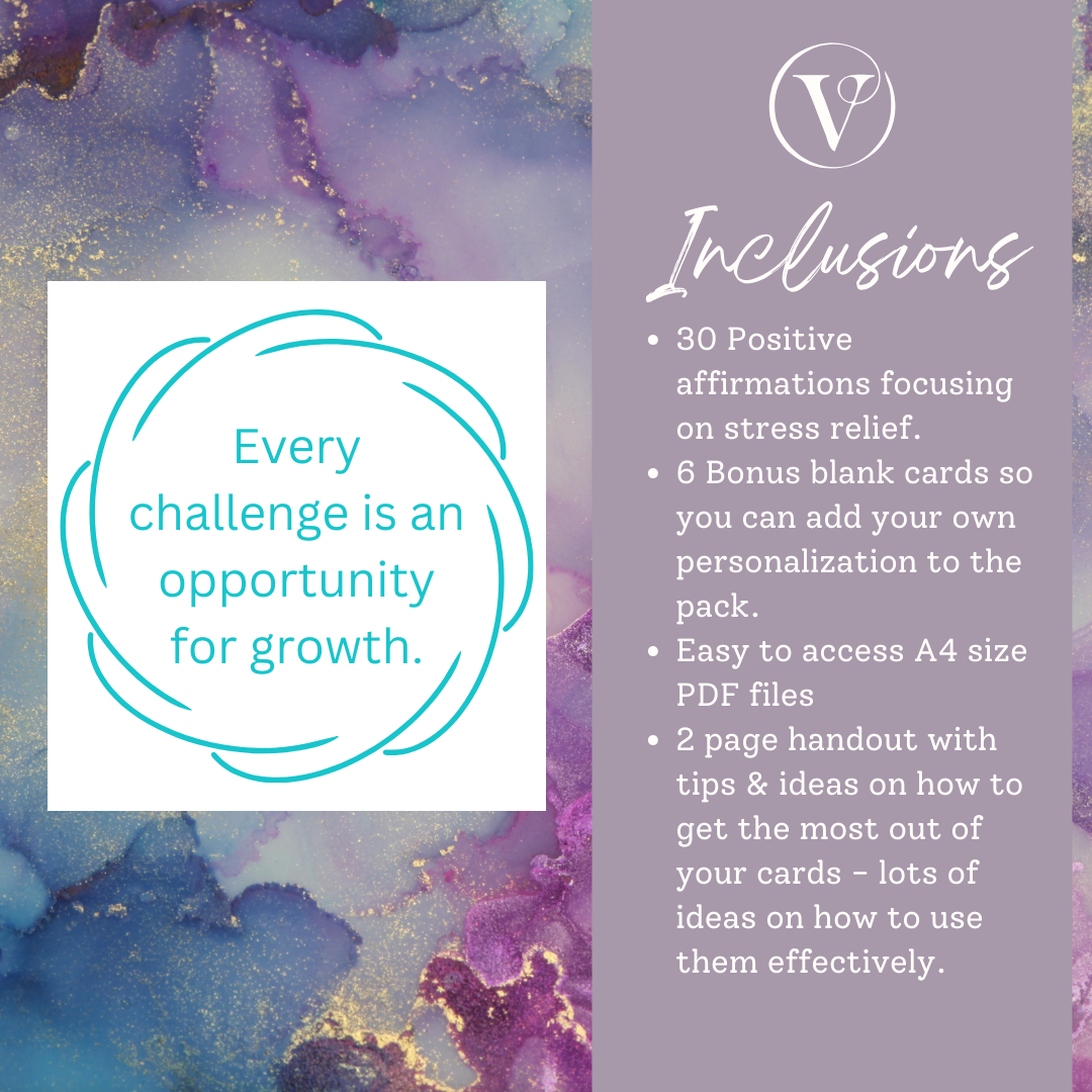 Printable Affirmation Card Set - Digital Download PDF - Stress Relief