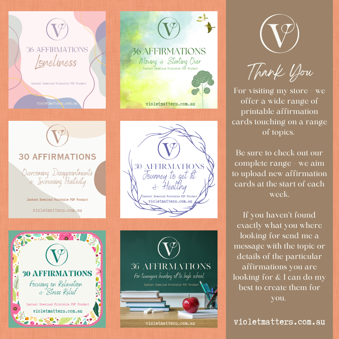 Printable Affirmation Card Set - Digital Download PDF - Struggling Empty Nesters