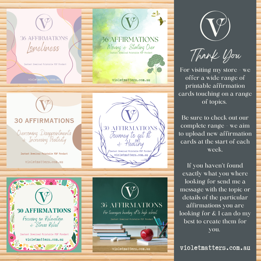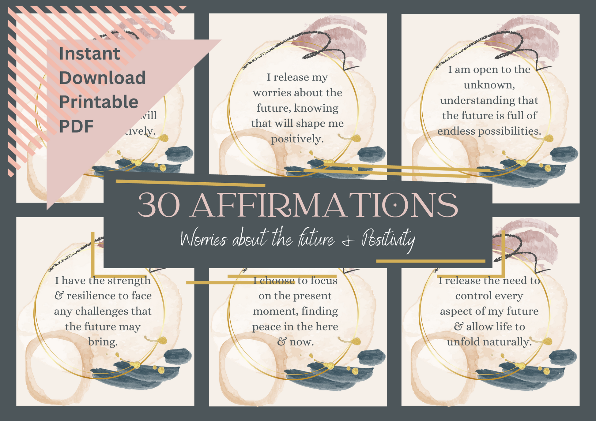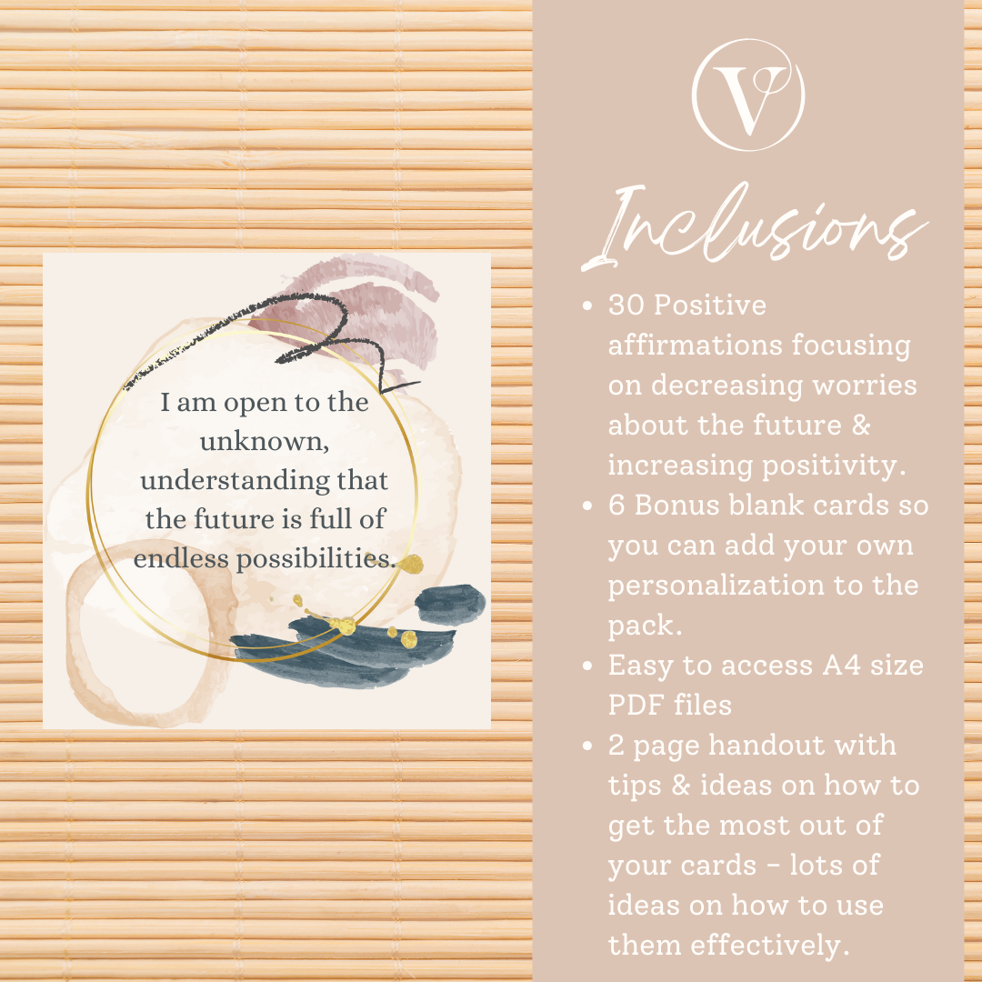 Printable Affirmation Card Set - Digital Download PDF - Worry & Positivity