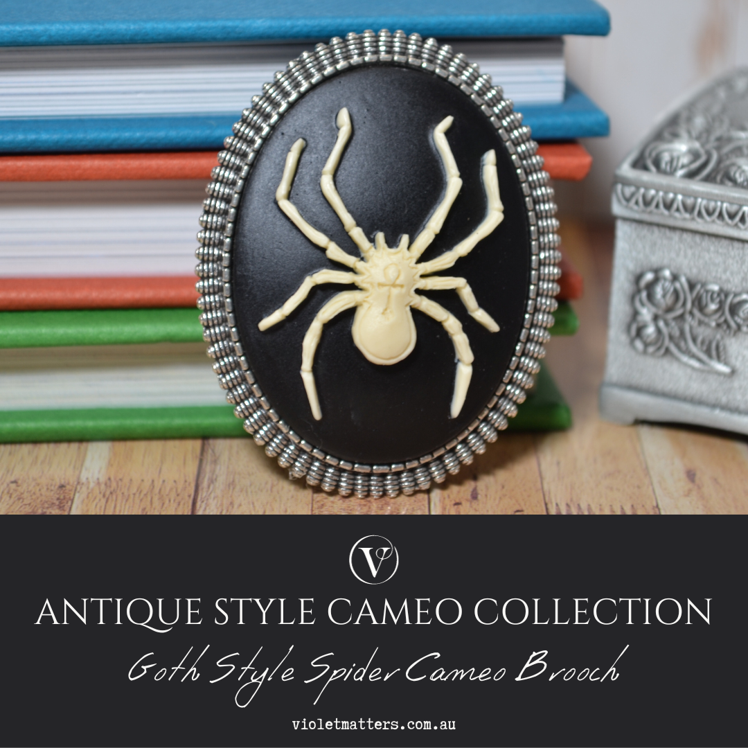 Antique Style Goth Inspired Cameo Brooch - Portrait of a Spider