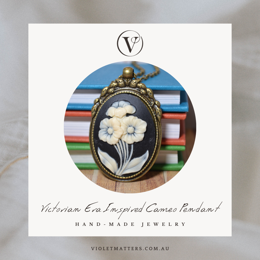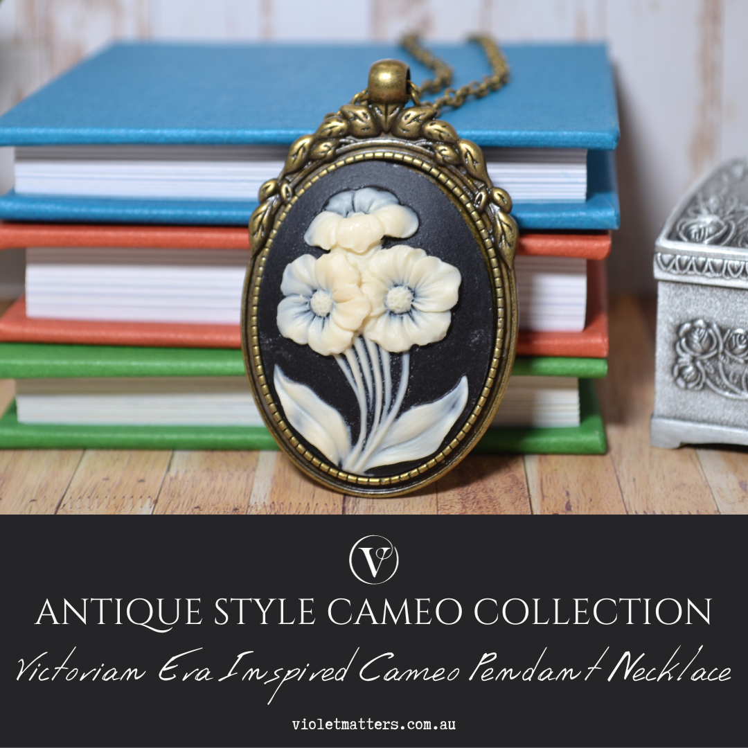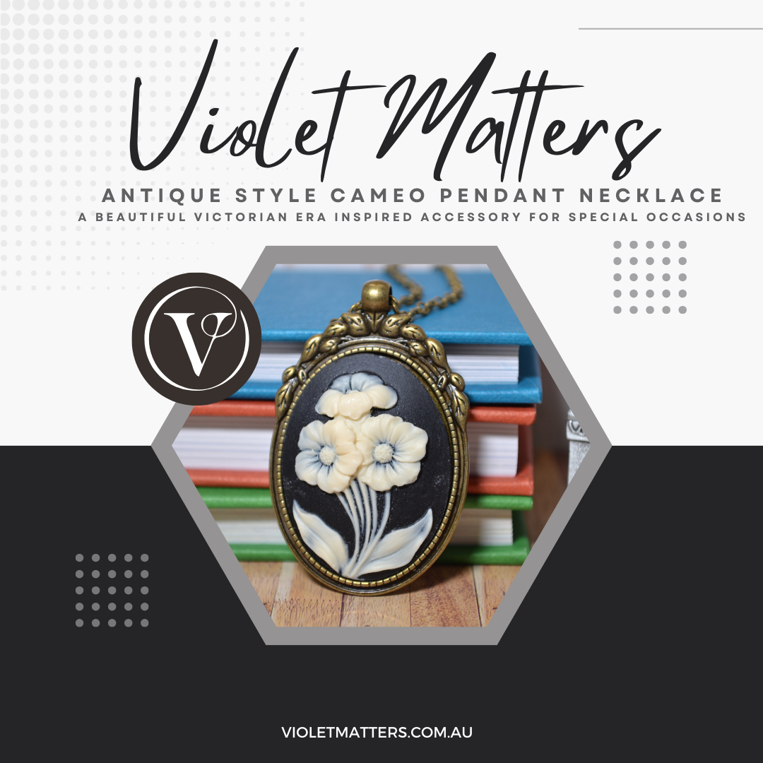 Antique Style Victorian Era Inspired Cameo Pendant Necklace - A Bunch of Flowers