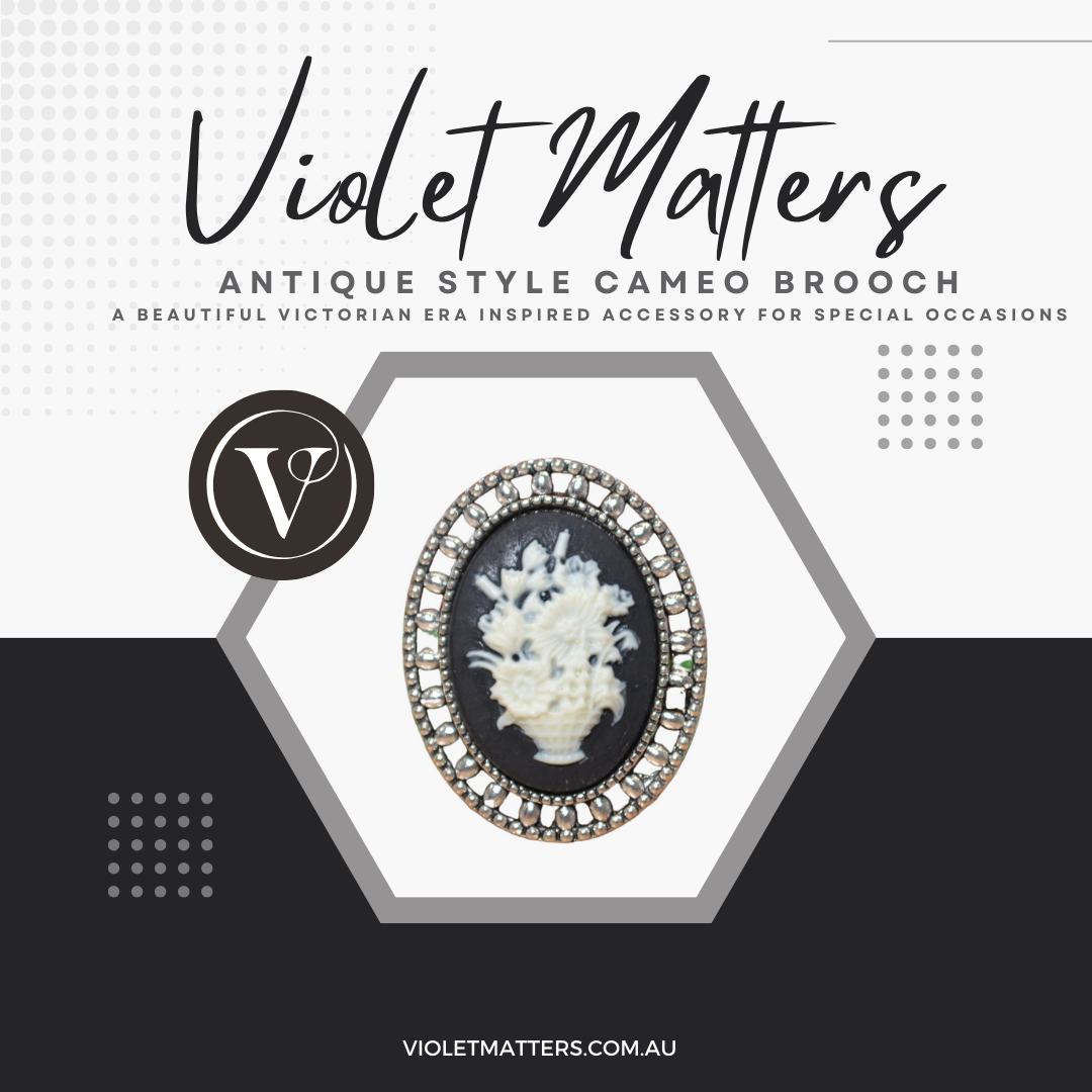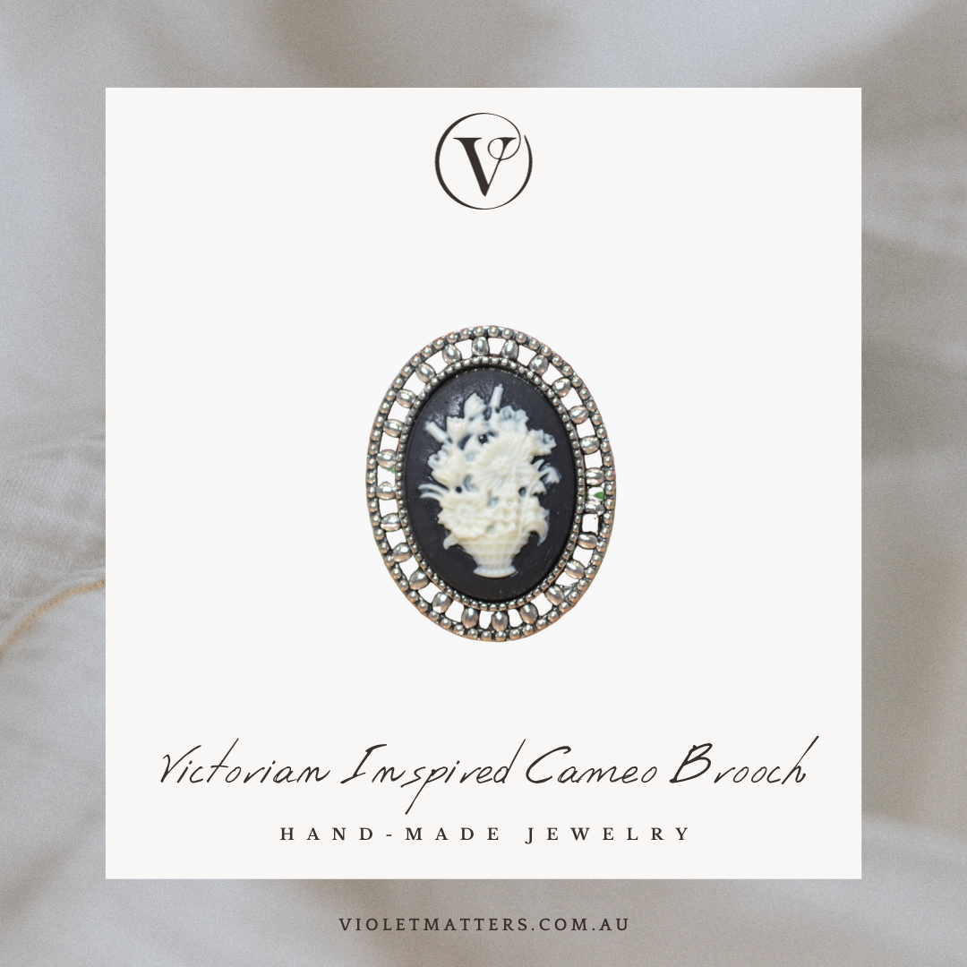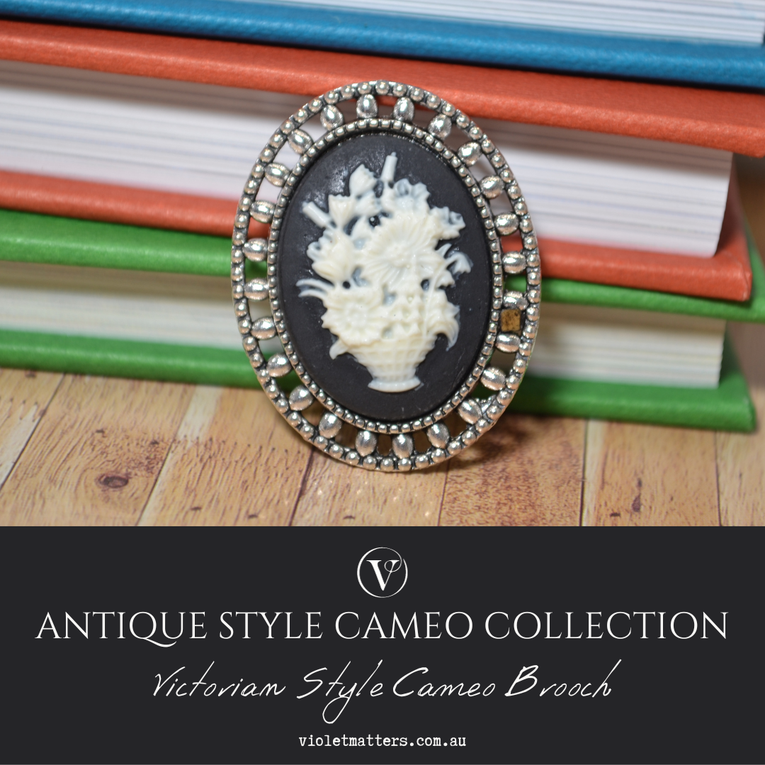 Antique Style Victorian Era Inspired Cameo Brooch - Bouquet of Flowers