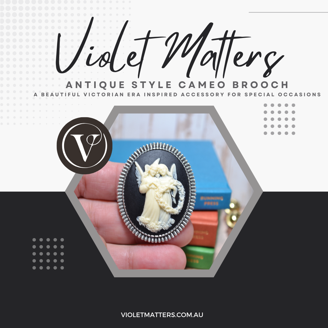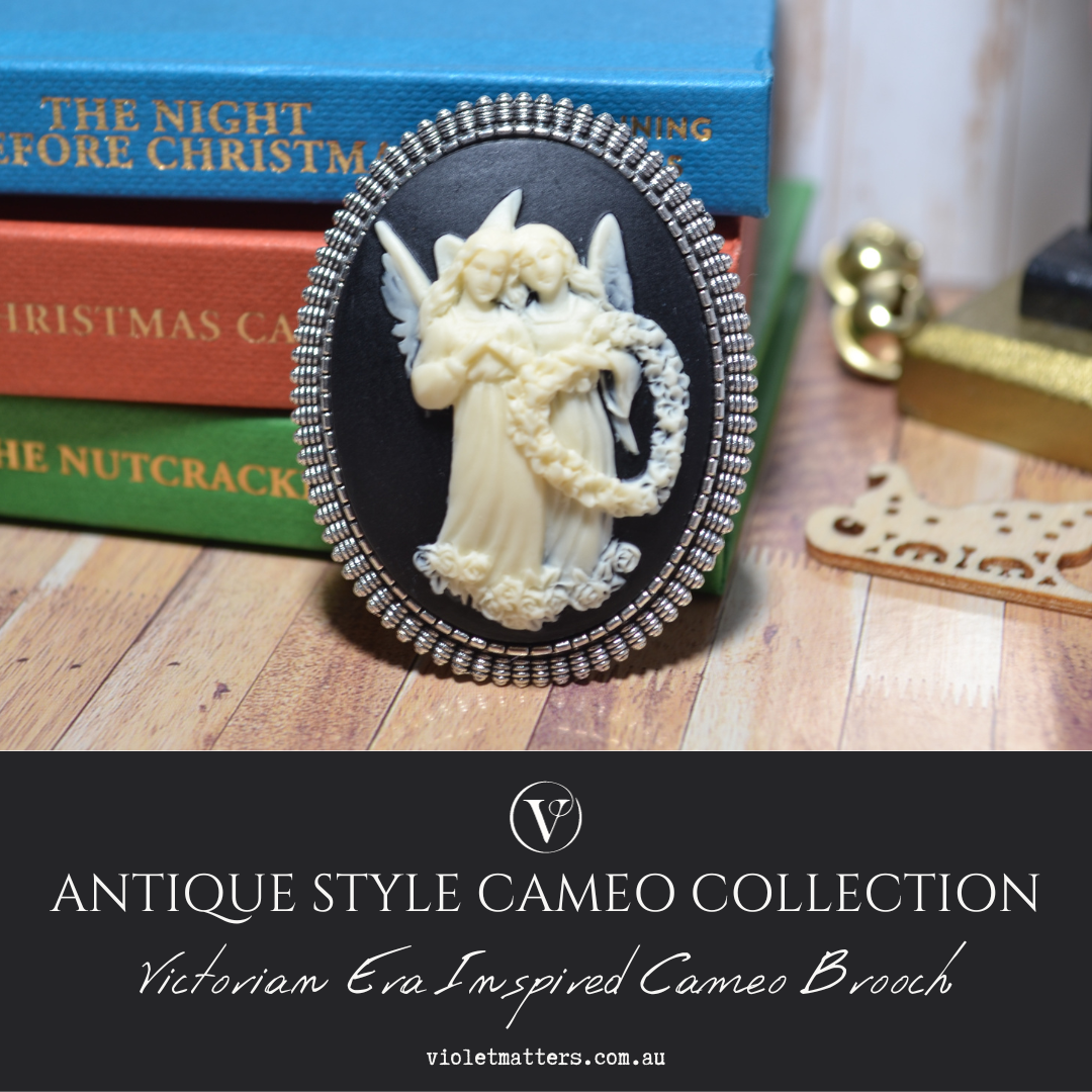 Antique Style Victorian Era Inspired Cameo Brooch - Guardian Angels