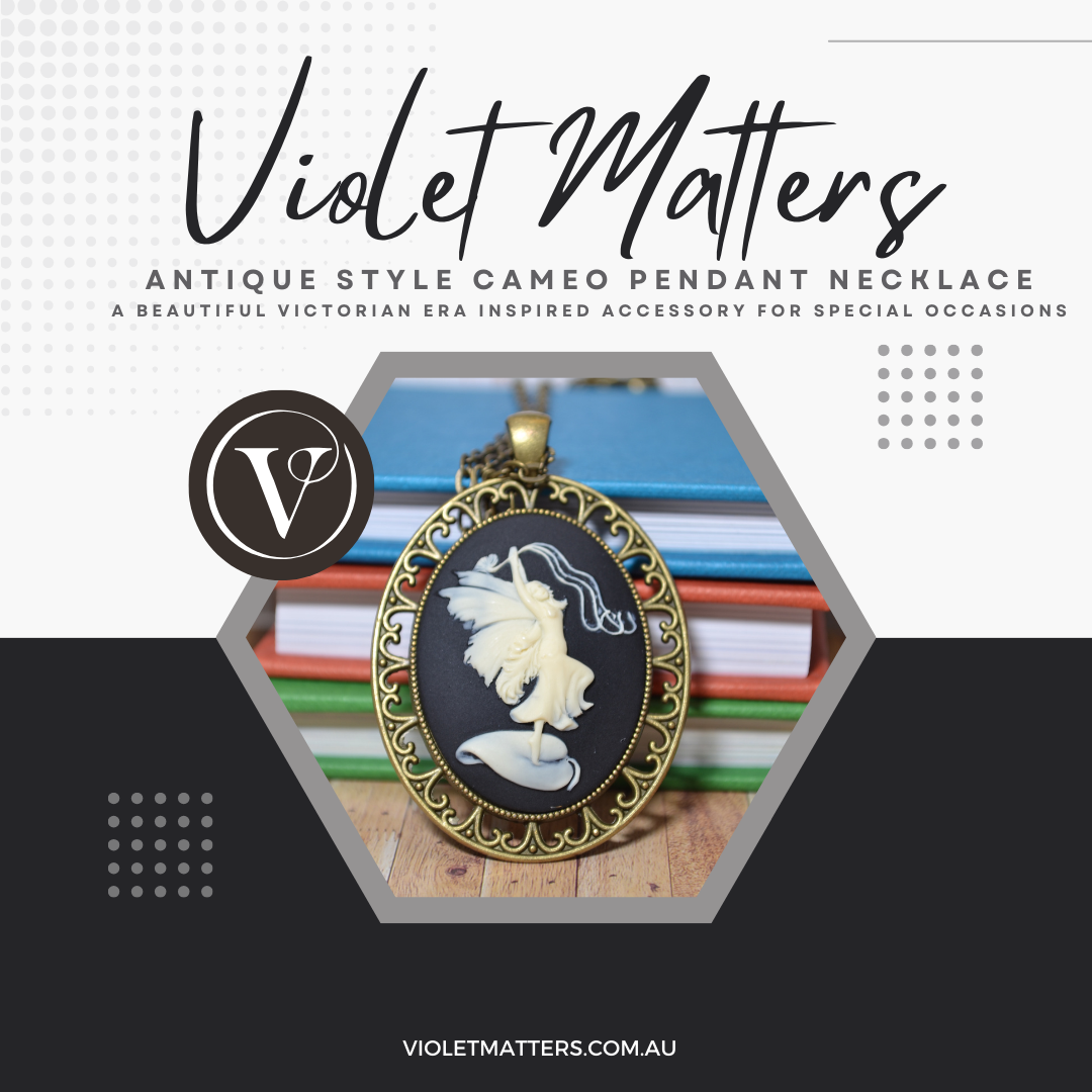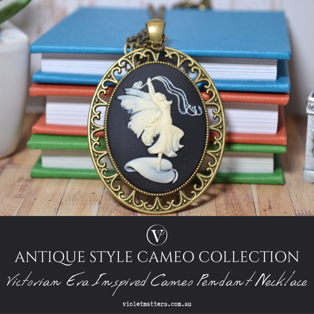 Antique Style Victorian Era Inspired Cameo Pendant Necklace - Portrait of a Dancing Fairy