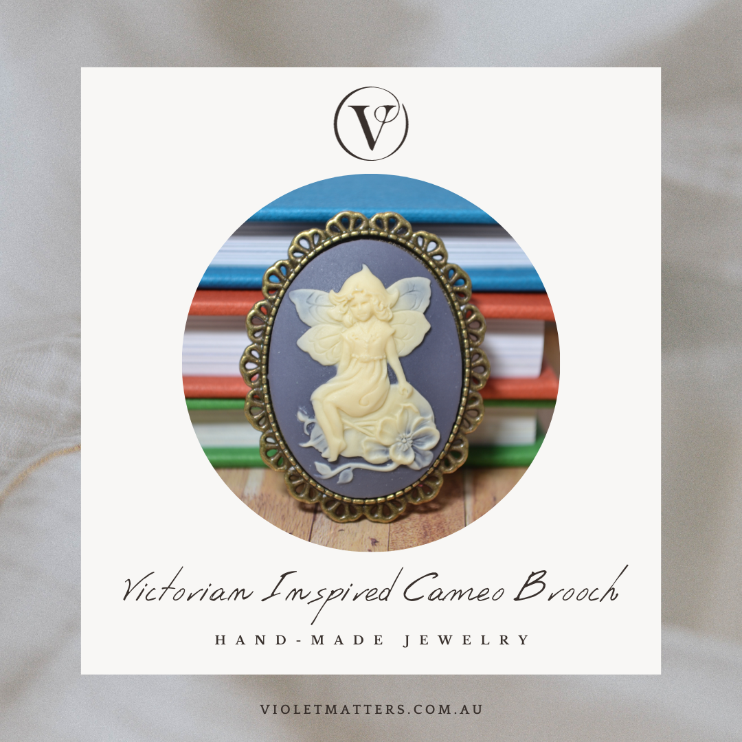 Antique Style Victorian Era Inspired Cameo Brooch - Portrait of a Fairy