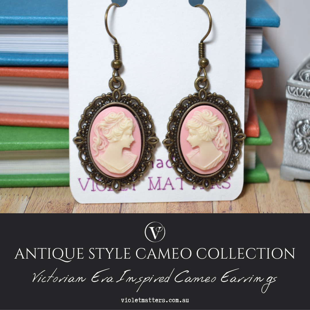 Antique Style Victorian Era Inspired Cameo Earrings - Portrait of a Lady