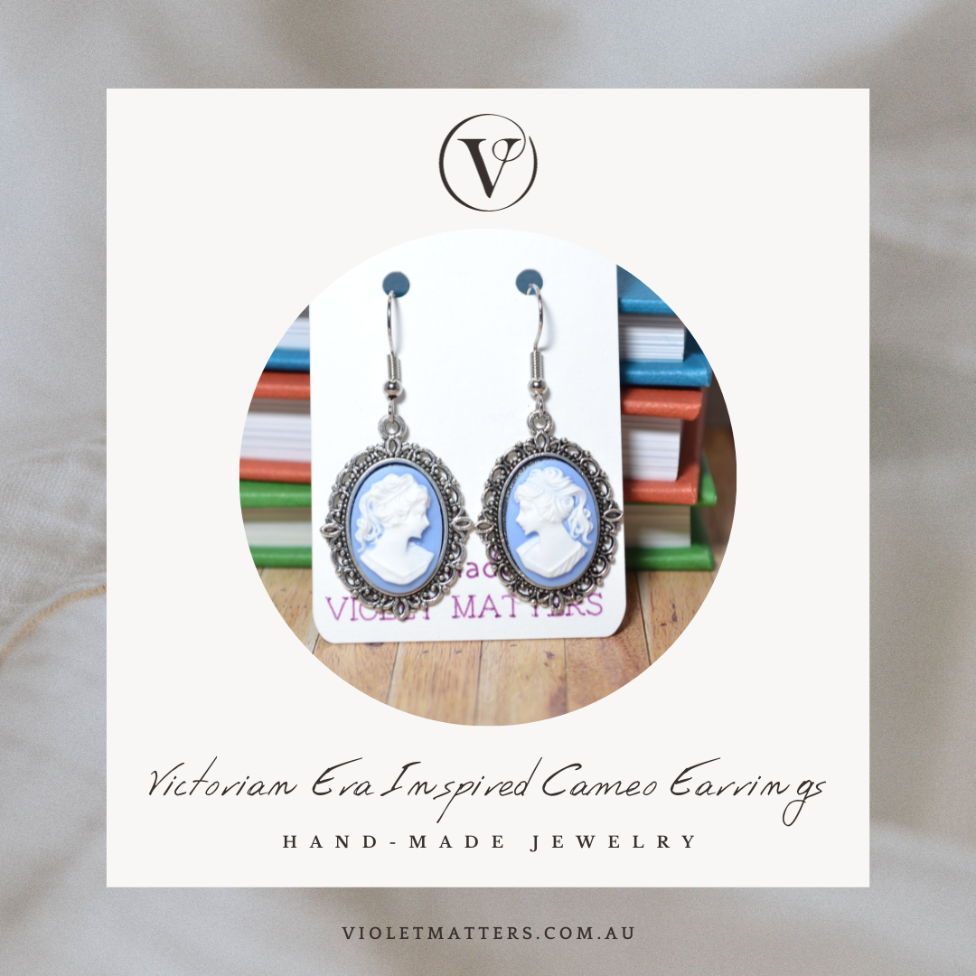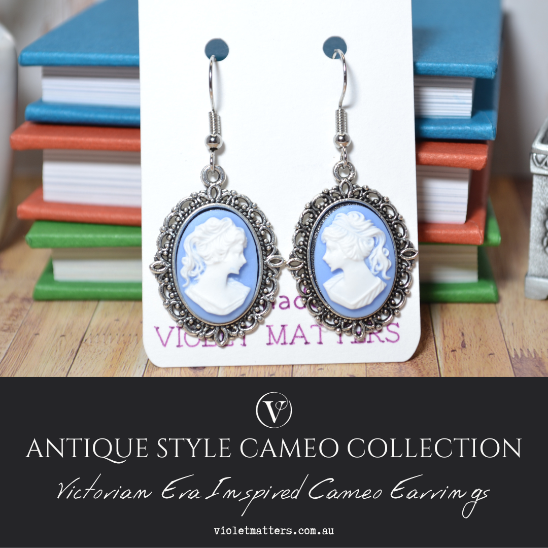 Antique Style Victorian Era Inspired Cameo Earrings - Portrait of a Lady
