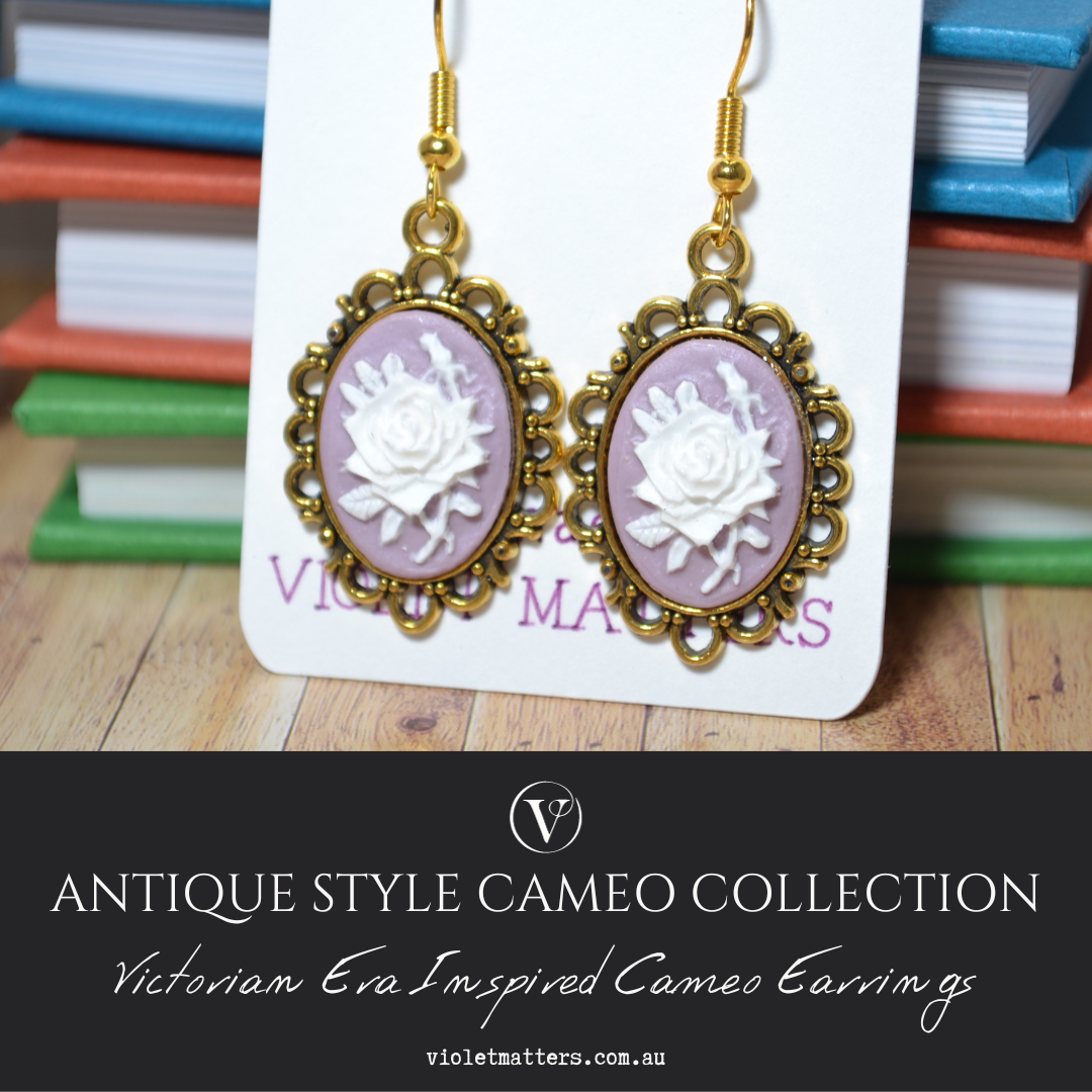 Antique Style Victorian Era Inspired Cameo Earrings - Portrait of a Lady