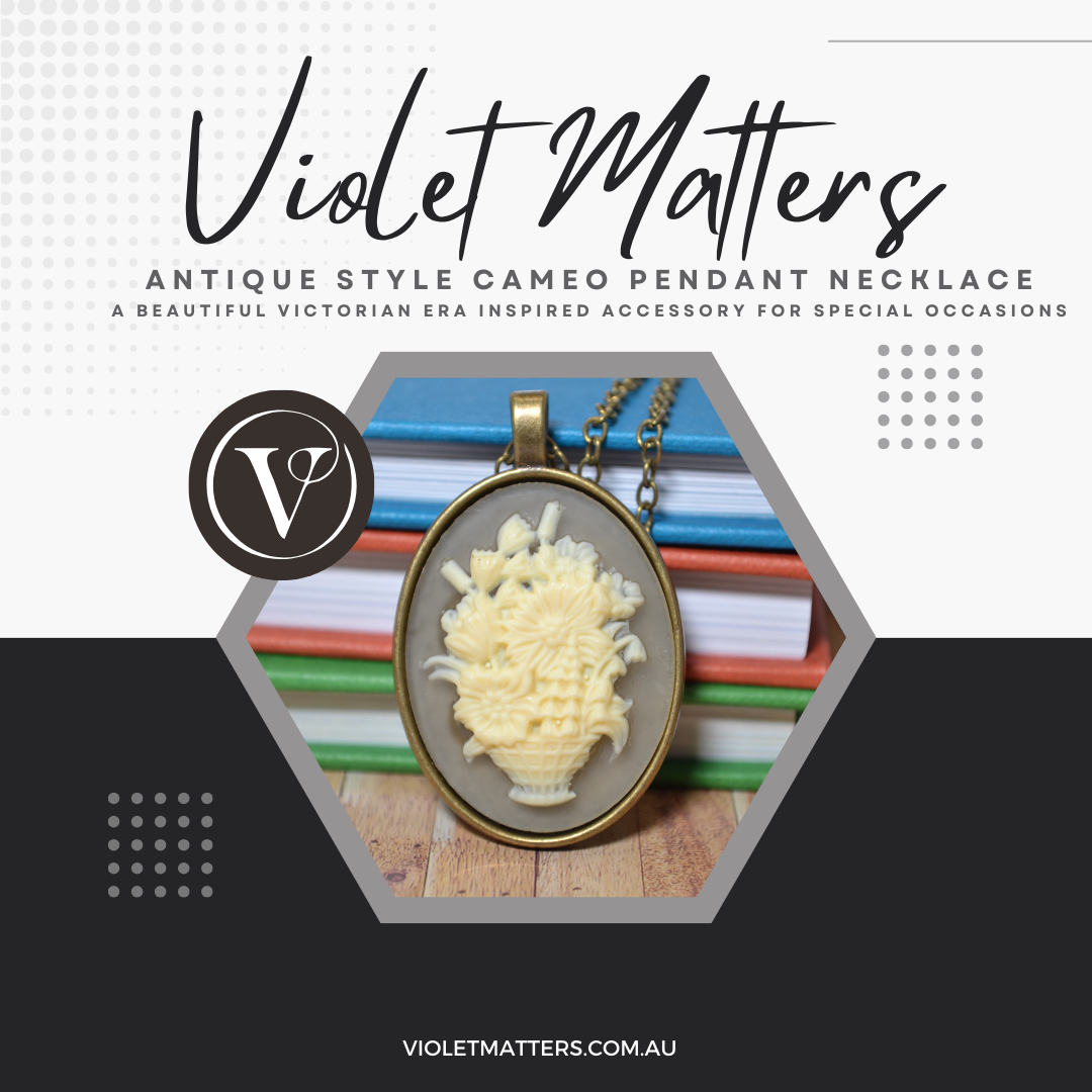 Antique Style Victorian Era Inspired Cameo Pendant - A Basket of Flowers