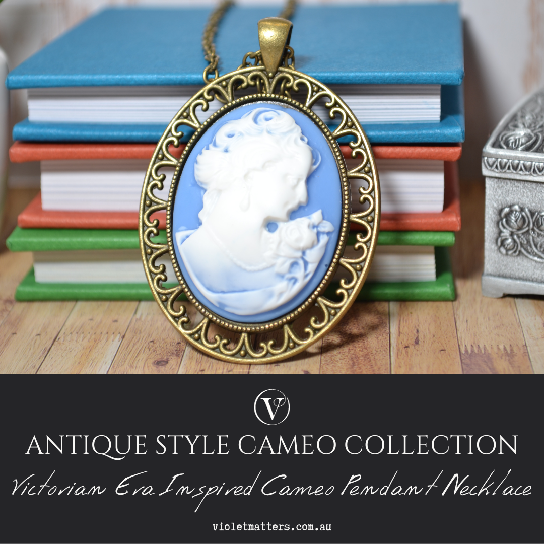 Are you looking for something a little different and special? This particular cameo pendant necklace has been set within an antique bronze plated frame and features a white women in profile set on a blue resin base - which would be great to wear all year round. Β