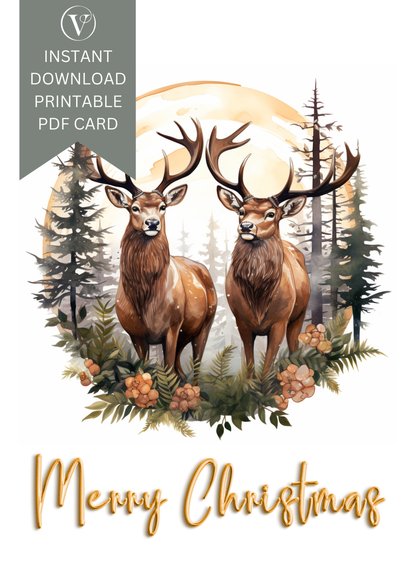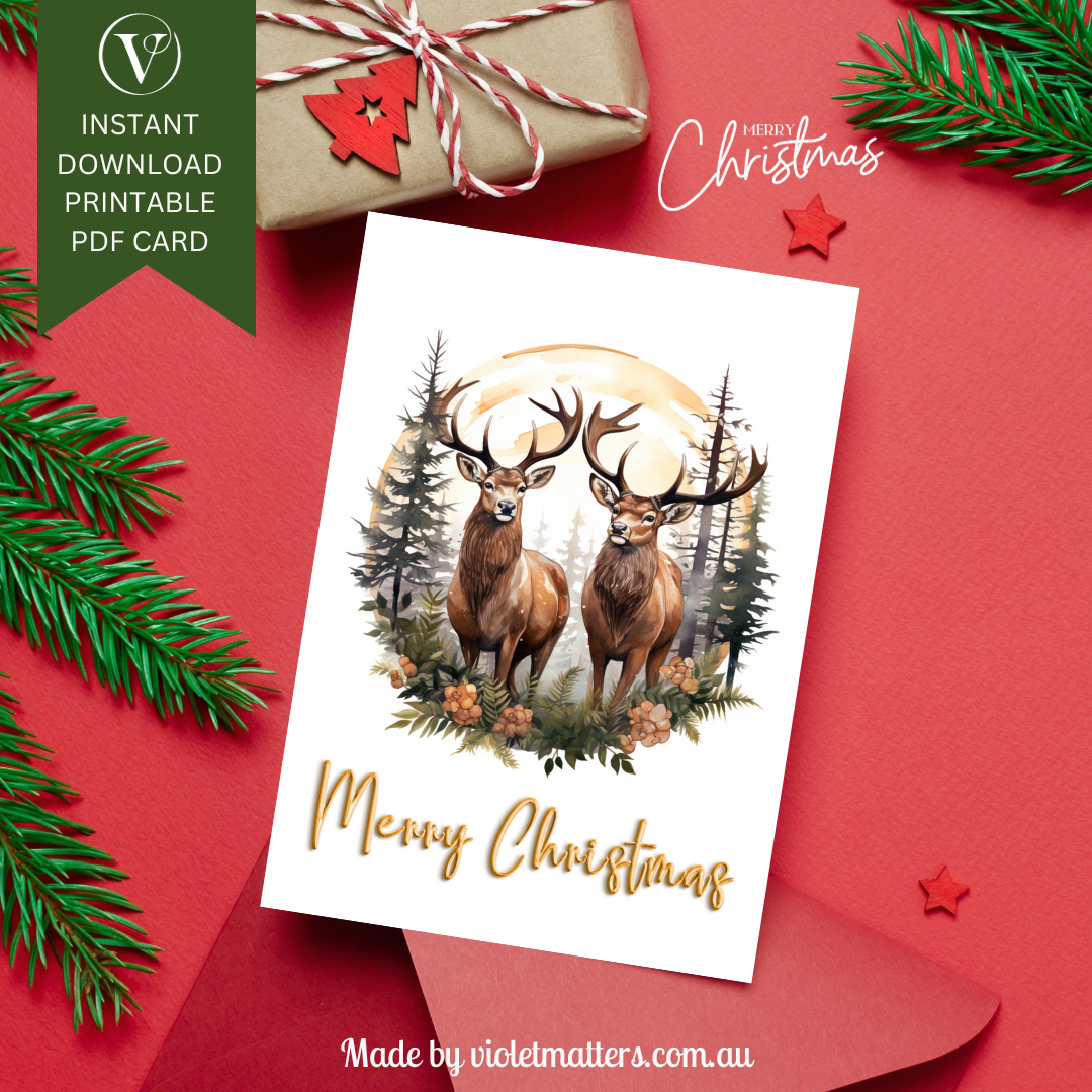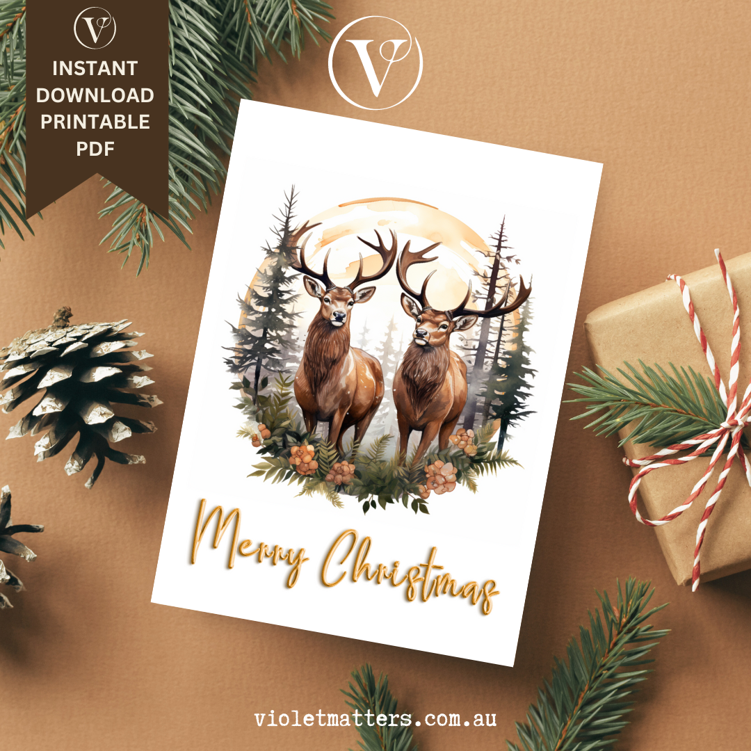 Step into the enchanting world of the forest with our Woodland Christmas Card. This stylishly designed card captures the serene beauty of nature, featuring a pair of graceful reindeer's alongside the classic greeting, "Merry Christmas." It's the perfect choice for those who appreciate the charm of the woodland and the magic of the holiday season.