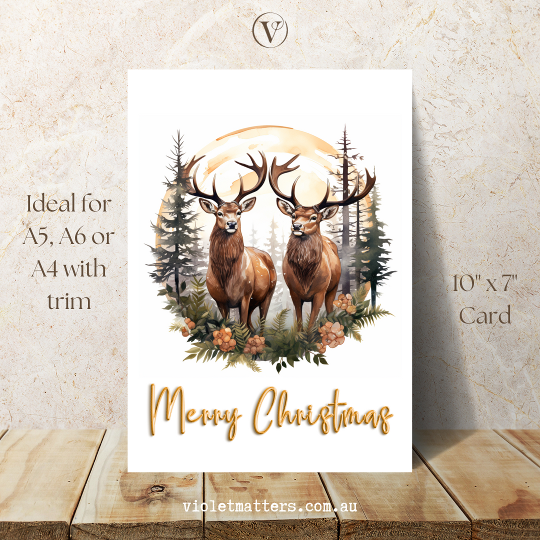 Stylish Woodland Style Reindeer Christmas A5 Card