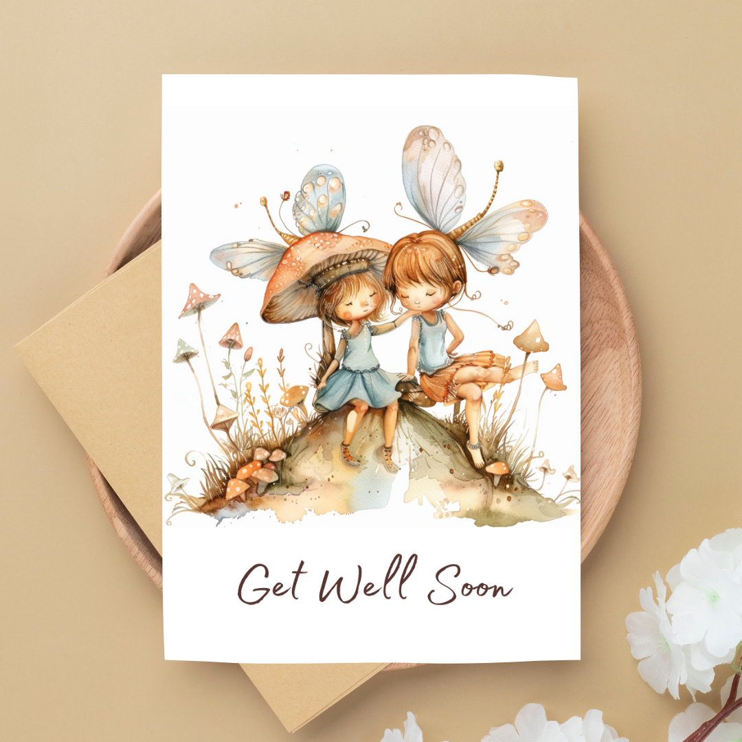 Beautiful Blank A5 Printable Get Well Soon Fairies Card - Printable Card