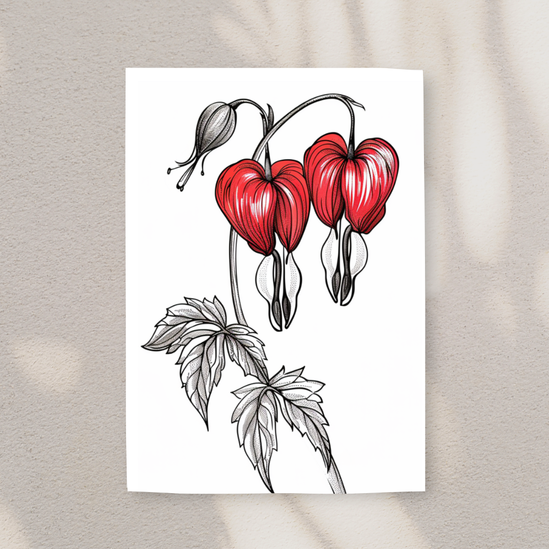 Versatile Blank A5 Printable Bleeding Heart Flower Inspired Card