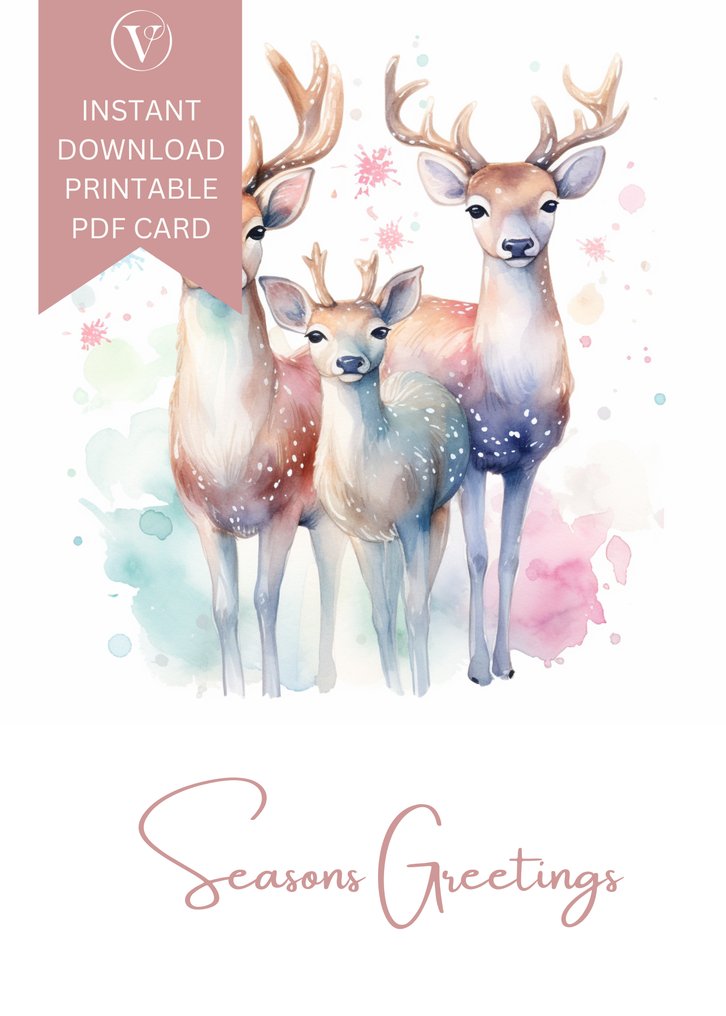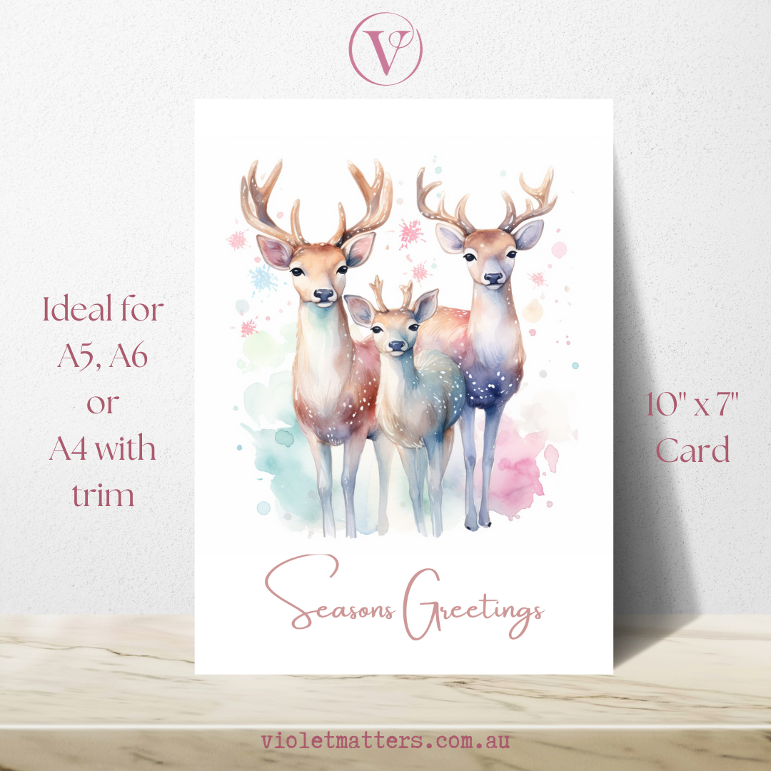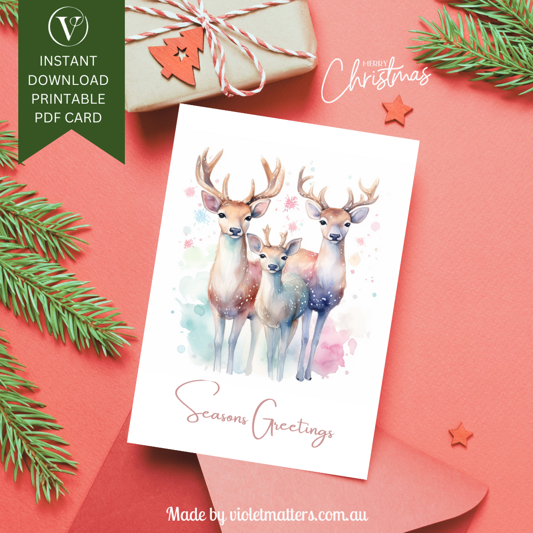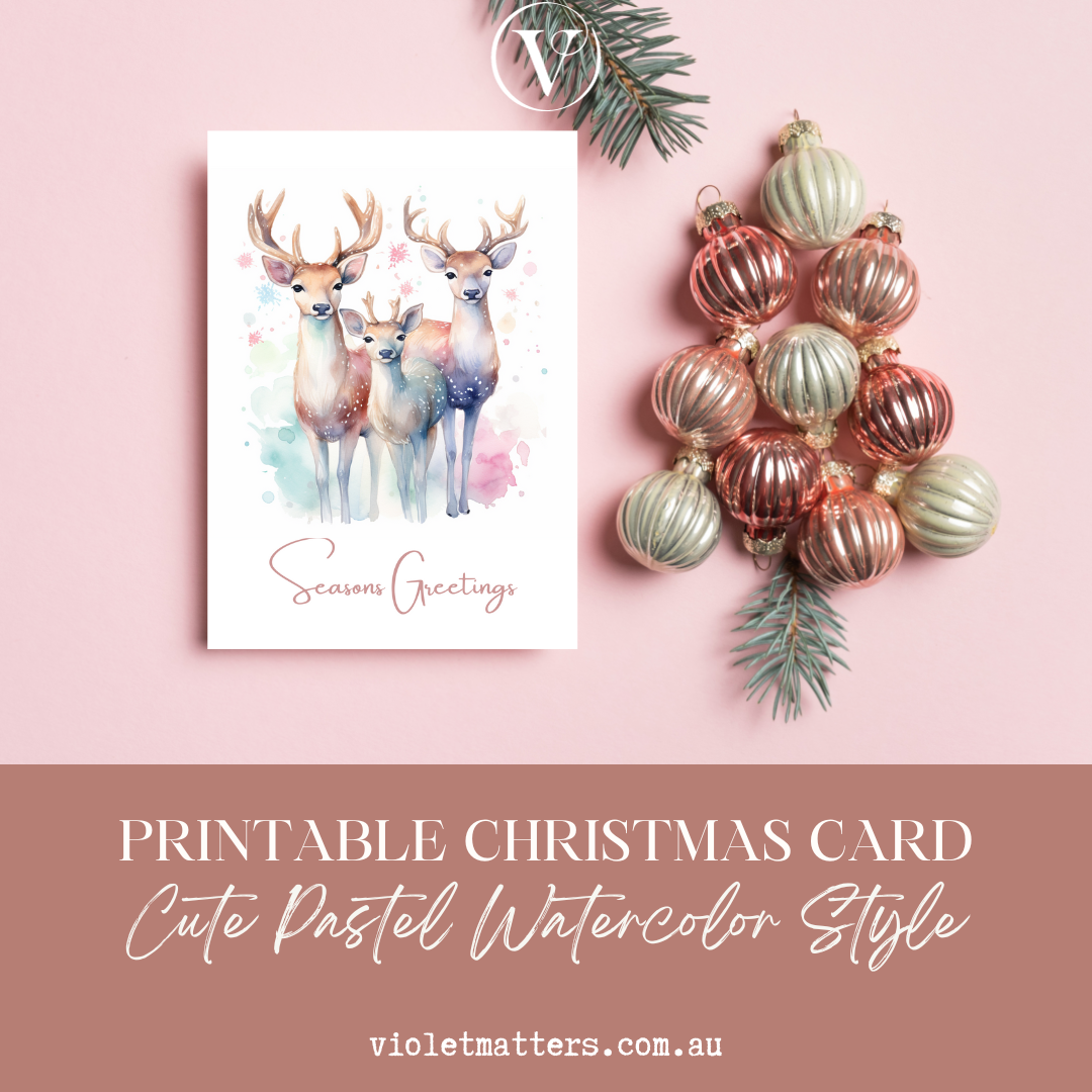 Beautiful Pastel Watercolor Deer Printable Christmas A5 Card