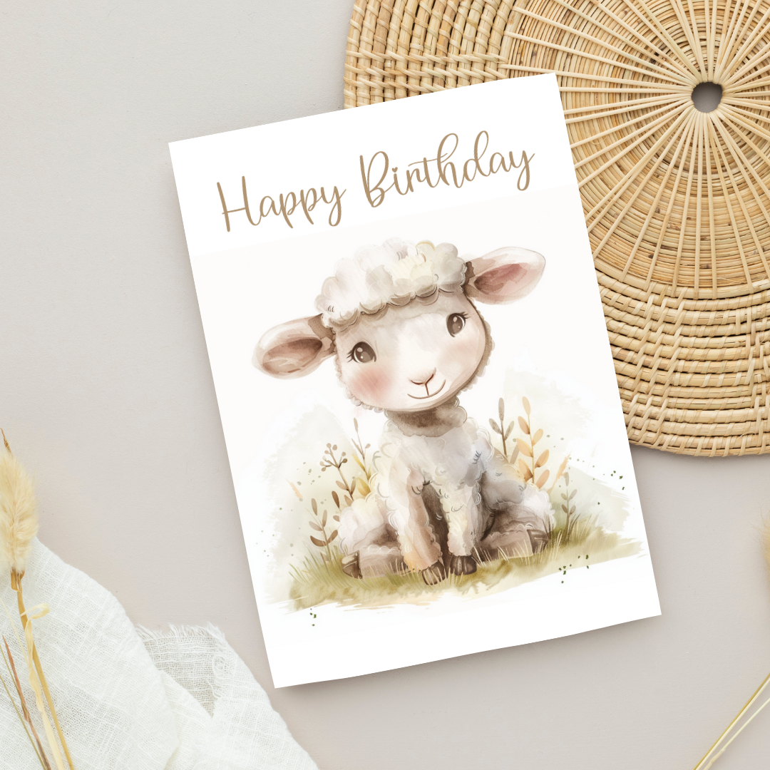 Blank A5 Adorable Animal Printable Lamb Birthday Card - Printable Card